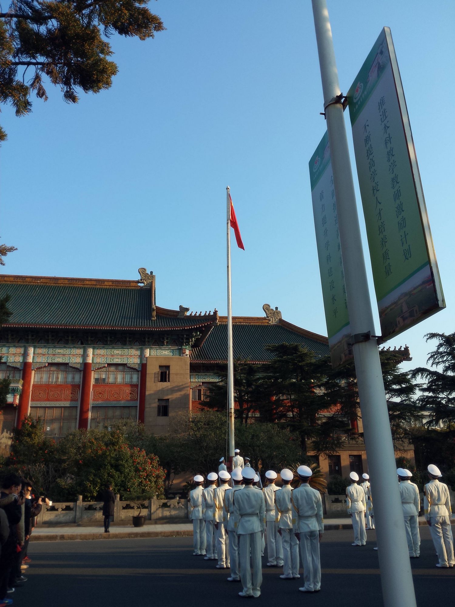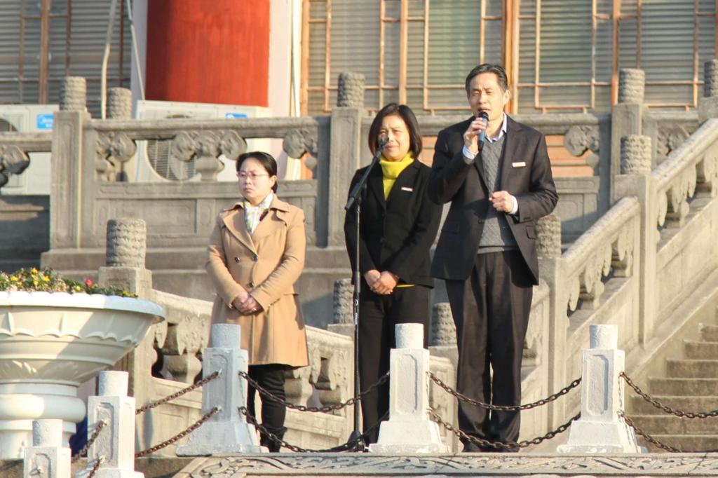 本网讯 2月29日上午,我校在绿瓦大楼前举行新学期升旗仪式。党委副书记、副院长陈晓峰,副院长毛丽娟出席仪式,宣传部部长匡淑平、学工部部长熊小健、教务处副处长(主持工作)唐炎,相关职能部门负责人、党总支书记与副书记、辅导员等共同参加本次仪式。升旗仪式由学工部副部长唐建华主持。