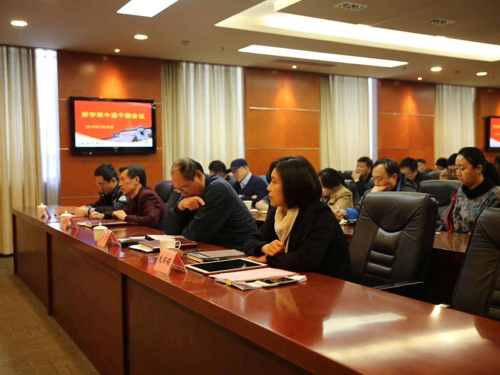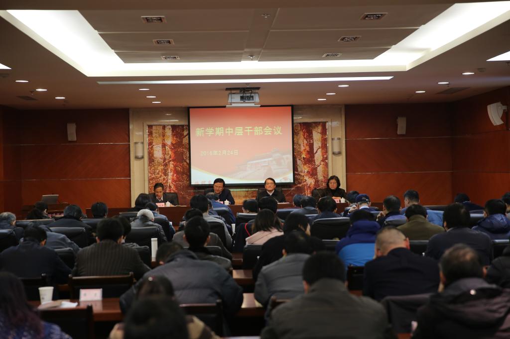 本网讯 2月24日下午,学校新学期中层干部大会在图文信息楼第二会议室召开。党委书记戴健传达2016年春季上海高校党政负责干部会议精神并讲话。他强调,要强化管党治党,从严落实并逐级压实全面从严治党主体责任。