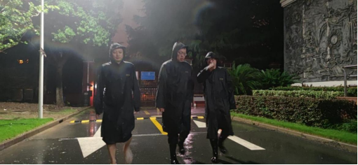 本网讯 近日,台风“梅花”在浙江舟山普陀沿海登陆,登陆时强度为强台风级,上海中心气象台于21时48分更新暴雨黄色预警信号为暴雨橙色预警信号,市防汛指挥部启动全市防汛防台Ⅱ级响应行动。为做好学校防御台风“梅花”的各项工作,排查风险隐患,14日晚间,校党委书记李崟、副院长王陈、后勤处处长徐烈带队深入校园防汛防台一线,指挥防汛防台工作,并慰问在校进行防汛工作的教职员工。