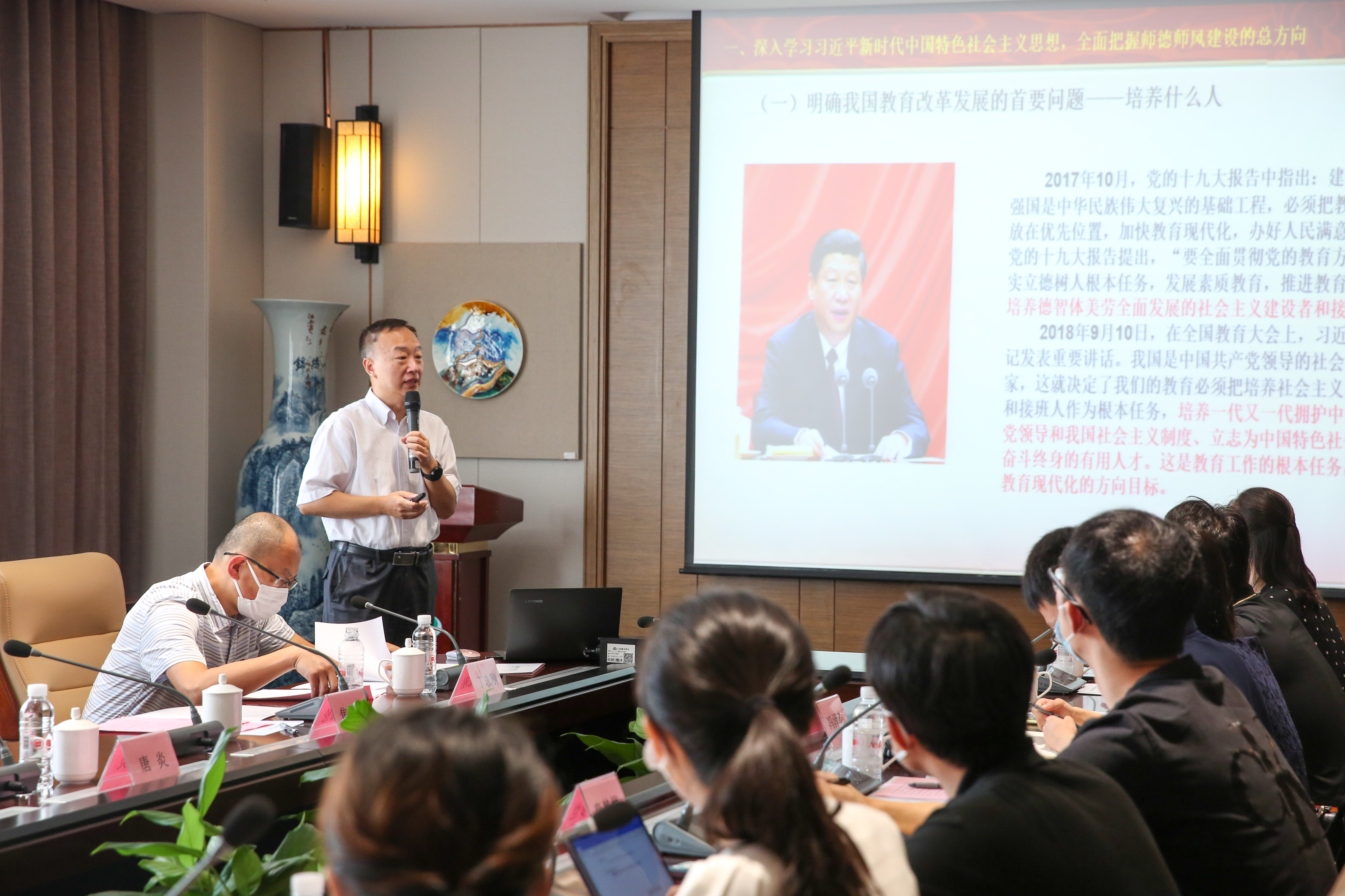 开班仪式结束后,发展规划处、教务处、科研处、资产处、信息化办公室、财务处、工会和人事处负责人,围绕学校“十四五”规划、教务教学管理、采购资产管理、学校网络及信息系统、薪资平台和经费报销、工会会员福利和教师文体项目、人事政策等方面为新教师做了具体而详尽的介绍,使新教师进一步了解学校、融入学校、热爱学校,增强了新进教师的责任感、使命感。