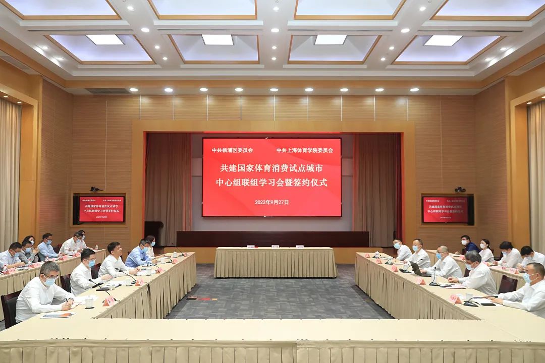 本网讯 今天(9月27日)上午,杨浦区委和上海体育学院党委关于共建国家体育消费试点城市中心组联组学习会暨签约仪式举行。杨浦区委书记谢坚钢、上海体育学院党委书记李崟出席会议并讲话。杨浦区委副书记、区长薛侃,副区长施方、王浩,上海体育学院党委副书记、院长陈佩杰,党委副书记潘勤,党委副书记、副院长王继红,副院长唐炎参加。会议由杨浦区委常委、宣传部部长卢刚主持。