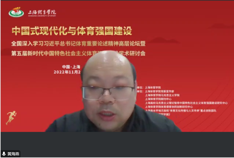 中国共产党领导是中国式现代化的关键特征和成功基因。强舸教授围绕党的领导与体育强国建设作了发言。他认为,作为中国式现代化的一方面,体育强国建设同样需要建立在充分发挥党的领导优势上。一是充分发挥体育组织中党的基层组织的作用,要根据党章规定在体育管理的系统工程中发挥好战斗堡垒作用。二是党中央从整体上谋划、统筹竞技体育、群众体育各项事业,推进远大蓝图的逐步实现。三是发挥好党建的监督保障作用,特别是深入推进反腐败斗争,有效促进体育某些重点领域的发展。此外,也要注意体育事业的特殊处,在中华民族伟大复兴的进程中,体育事业更需要个性张扬、舍我其谁的运动员精神。