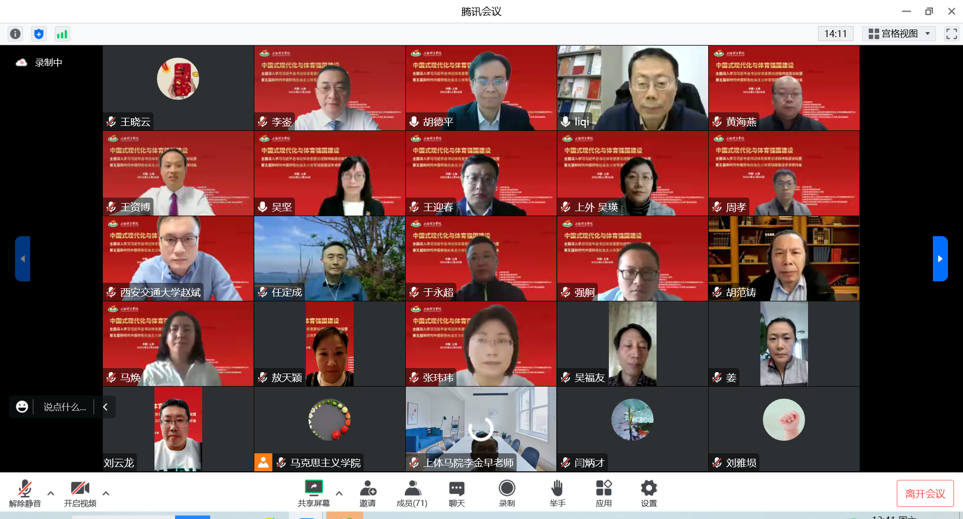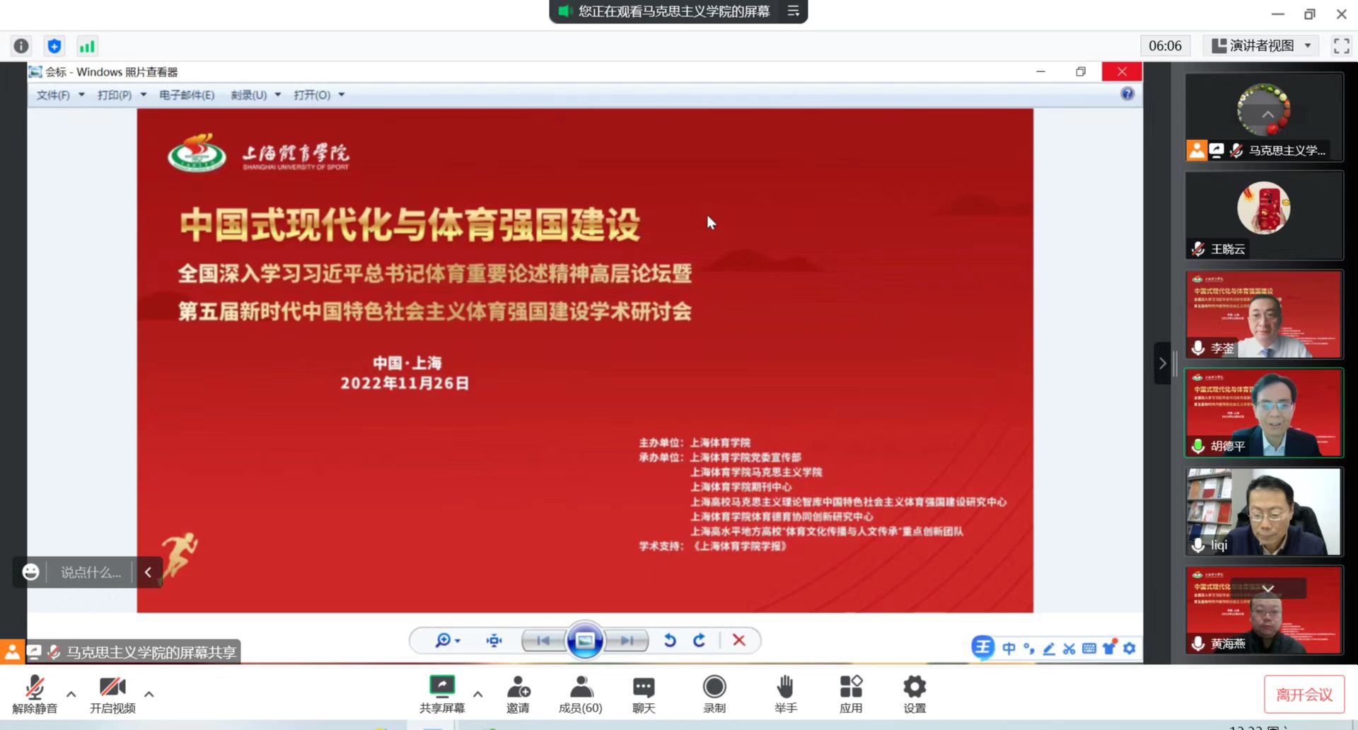 本次会议由上海体育学院举办,党委宣传部、马克思主义学院、期刊中心、上海高校马克思主义理论智库中国特色社会主义体育强国建设研究中心、上海体育学院体育德育协同创新研究中心、上海高水平地方高校“体育文化传播与人文传承”重点创新团队联合承办,是上海体育学院庆祝建校70周年系列学术活动之一。来自中共中央党校(国家行政学院)、中国财政科学研究院、人民日报社人民论坛杂志社、上海市社联、上海人工智能实验室、西安交通大学、华东师范大学、山西大学、上海外国语大学、上海体育学院、上海格物文化发展研究院等高等院校、科研院所、智库机构的专家学者,围绕“中国式现代化与体育强国建设”的会议研讨主题,展开多学科交流和跨学科对话。