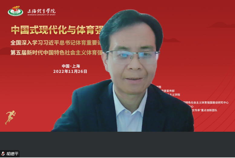 上海体育学院马克思主义学院院长、博士生导师胡德平教授对大会作了总结。他认为,这次会议体现了三个特点:一是主题明确,以多元话题展开跨学科对话。研讨会以“中国式现代化与体育强国建设”为主题,研讨的话题涉及体育现代化、城市体育景观与景观体育、传统体育文化的时代性自觉、体育外交与人类命运共同体、体育强国的国际传播、党的领导与体育强国建设、人工智能、财政助力等多个方面,通过多学科交流和跨学科对话,真正体现了跳出体育看体育、立足全局看体育、放眼长远看体育。二是论域广泛,以多维视角透析新体育发展。体育随着经济社会的发展而不断拓展功能,当前,体育被赋予了强大的政治功能、经济功能、文化功能、社会功能、教育功能、外交功能、生态文明功能等等,形成了新时代的新体育形态,成为人民美好生活的重要组成部分,成为中华民族伟大复兴的标志性事业,不同学者从不同学科视角为我们展开了一副副研究场景,让我们借助不同学科视角来研究新时代体育成为可能。三是研讨深入,以多层结合推动全方位研究。专家学者来自国内高等院校、科研院所、智库机构,在交流研讨过程中,鲜明体现了学习与宣传相结合、理论与实践相结合、研究与资政相结合。