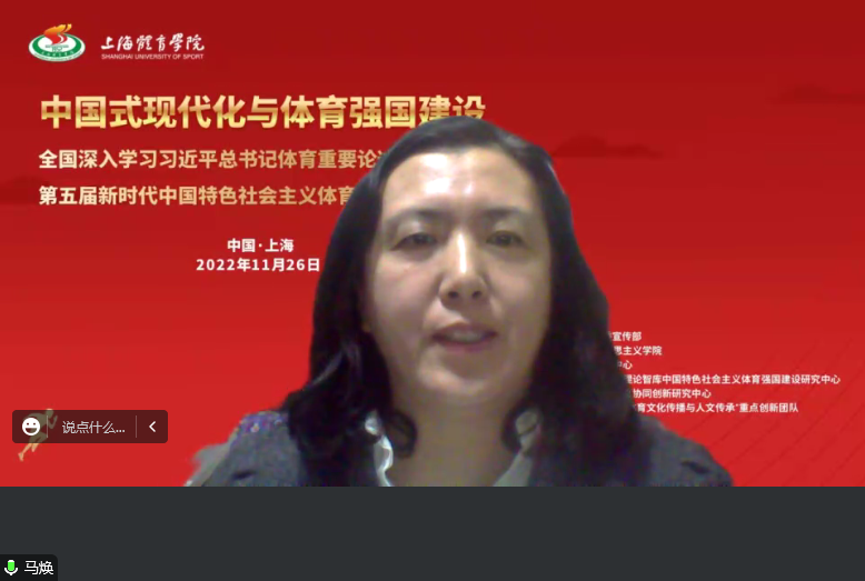 李琪教授以“体育现代化和中国式现代化”为主题进行报告。他指出,党的十八大以来的十年奋斗历程中,以习近平同志为核心的党中央带领14亿人民,把新时代中国特色社会主义现代化建设不断推向前进,为走出一条中国式现代化之路从实践和理论两大方面进行了艰辛探索和富有成效的经验总结。从主体体量的维度来看,“14亿多人整体转向现代化”中的这个“整体”,是在中国共产党坚持以人民为中心、德智体美劳一体化发展方针指导下的全民整体,是“健康中国”人格化全面显现的整体;从发展目标的维度来看,就是要坚持做到人民至上,为满足人民对美好体育生活的向往,实现全体人民的共同发展、共同富裕、共同健康幸福;从文明协调的维度来看,新时代的体育现代化,不仅要着力推进现代体育科技手段升级换代、体育基础设施的现代化,还要大力促进人的全面发展,在展示中华体育文化软实力方面做出新的探索;从生态保护的维度来看,要坚持走节约资源、保护环境、绿色低碳的现代体育发展道路,并大力培养具有环保意识的新一代体育人才;从国际关系的维度来看,体育现代化发展要为推动构建新型国际关系,为全世界和平进步、发展共赢、平等相处、友好合作作出重要贡献。