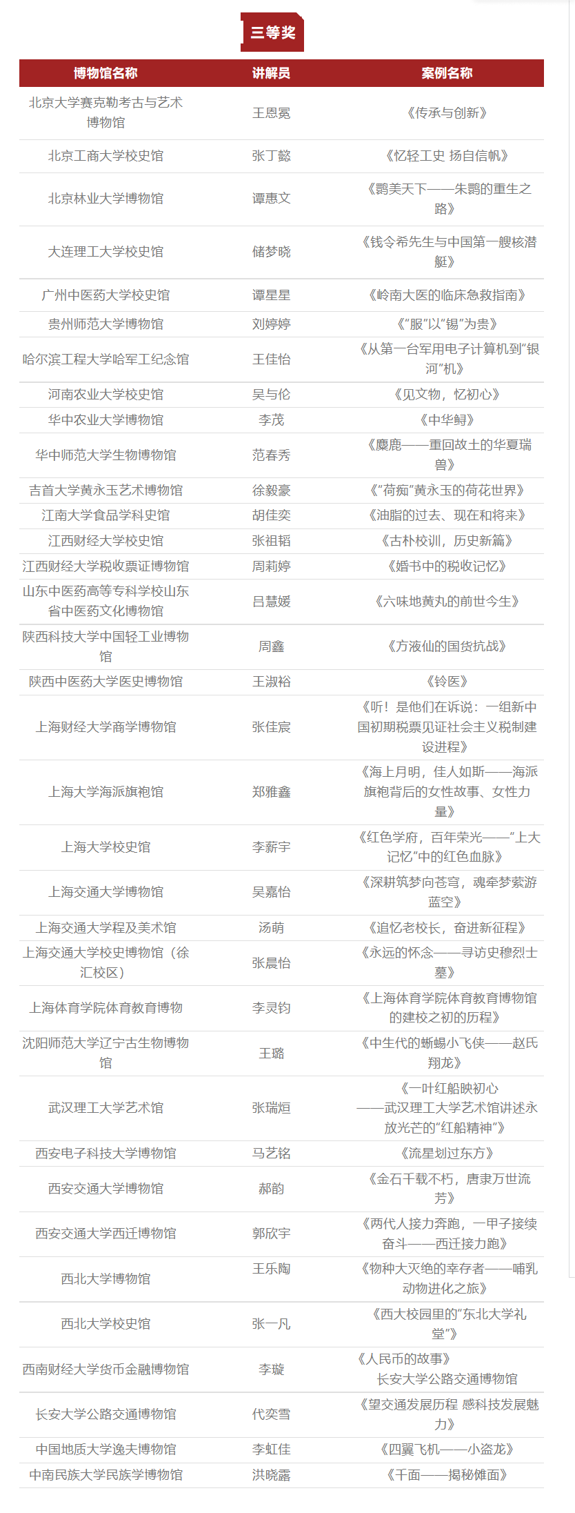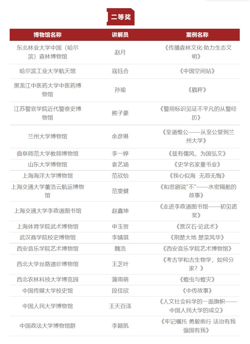 附:2022全国高校博物馆优秀讲解案例征集展示活动获奖名单(按单位拼音首字母排序):
