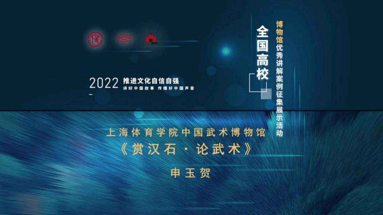 我校武术学院刘玥婷老师指导的2021级学生申玉贺作品《赏汉石·论武术》最终荣获2022年全国高校博物馆优秀讲解案例征集展示活动“全国二等奖”和“优秀融媒传播奖”。