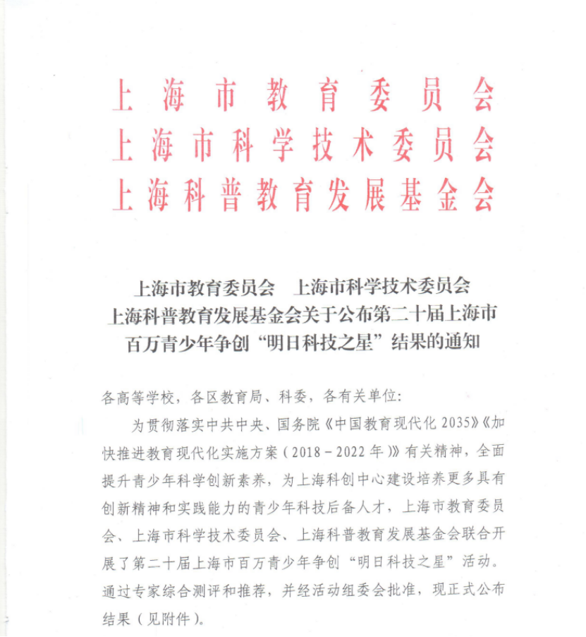 本网讯 日前,由上海市教育委员会、上海市科学技术委员会和上海科普教育基金会共同主办,第二十届上海市百万青少年争创“明日科技之星”评选活动落下帷幕。由杨苏勇教师指导,心理学院本科生张旻晟、王宗豪、张瀚月组成的“自闭症儿童身体机能康复的困境与对策”项目科研团队,荣获“科技希望之星”称号(三等奖)。