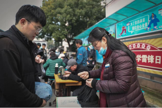3月1日中午,后勤物业在第一餐厅门口开展“学雷锋日”生活便利为你服务活动,物业人员在现场提前备好针线、缝纫机、维修工具等,为学生免费缝补、熨烫衣物、毛衣除毛球、维修自行车等便民服务,帮助学生解忧,同时培养勤俭节约的好习惯。