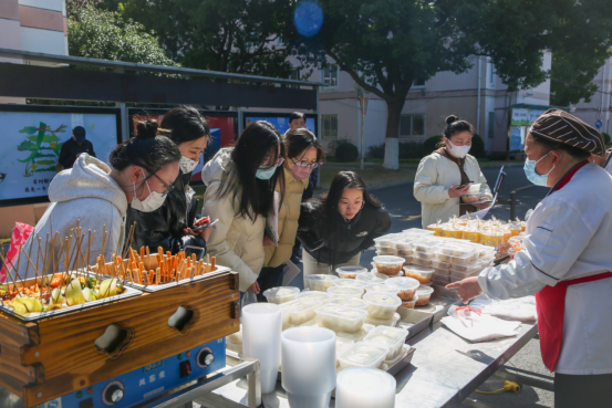 餐饮部提前发布平价菜预告菜单,在活动现场推出特色青团、西式糕点、面食点心、水果拼等20余种价廉物美的中西式菜品供师生选购,其中冷锅串串、蛋黄酥、拌河粉、酱鸭、小黄鱼等美食深受师生喜爱。