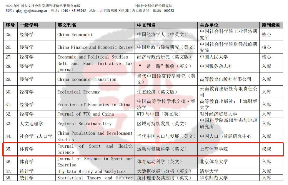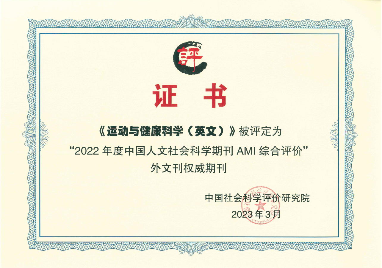 本轮评价中,《运动与健康科学(英文)》成为中国人文社会科学仅有的2种权威外文期刊之一(另一种是《中国与世界经济》),以及仅有的2种权威体育学期刊之一(另一种是《体育科学》)。这是对我校人文社会科学期刊办刊质量的高度认可。《运动与健康科学(英文)》曾连续8年在2000余种人文社会科学期刊中排名第一并蝉联“中国最具国际影响力学术期刊”称号,荣获我国新闻出版领域的最高奖项——中国出版政府奖,最新影响因子跃升至13.077,位居SSCI学科库(酒店、休闲、体育与旅游类期刊)世界第一,成为全球顶级学术期刊。未来,《运动与健康科学(英文)》仍将学术质量视为生命线,精心策划和组织主题出版,不断提高期刊品质,更多展示有高度、有深度、有温度的研究成果,更多促进有利于我、有惠于人、有益于人类的中外体育学术交流。