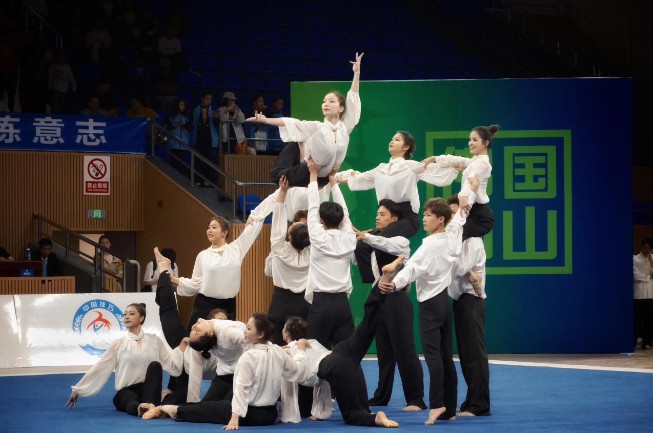 (上海体育学院技巧队圆满完成本次比赛任务)