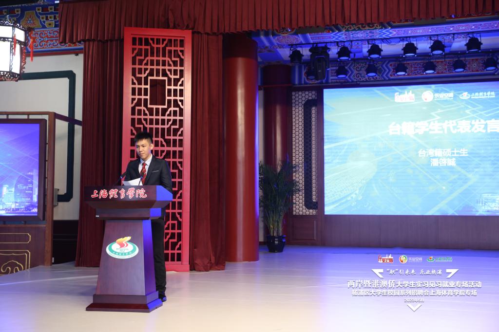 我校台湾籍硕士毕业生潘启诚也分享了他的故事,临近毕业时潘同学关注了国台办与上海市等发布的惠台政策,也了解到近几年来杨浦区在拓展港澳台生就业创业路径方面所做的扎实工作,这些都让他更加充满信心,希望可以发挥特长,打拼出属于自己的一番成就,也能更好地回报母校,回报上海。