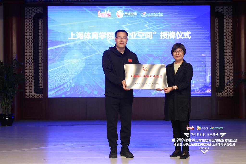 区人力资源和社会保障局和我校就业指导中心共建“乐业空间”颁牌;区人民政府台湾事务办公室向我校创新创业副院长陈伟等颁发台湾大学生创业就业指导师颁发聘书;并吸纳上海巅峰健康科技股份有限公司、尚体健康科技(上海)有限公司、上海跃动文化传播有限公司3家校友创业企业为杨浦区大学生创业就业实习基地并授牌。