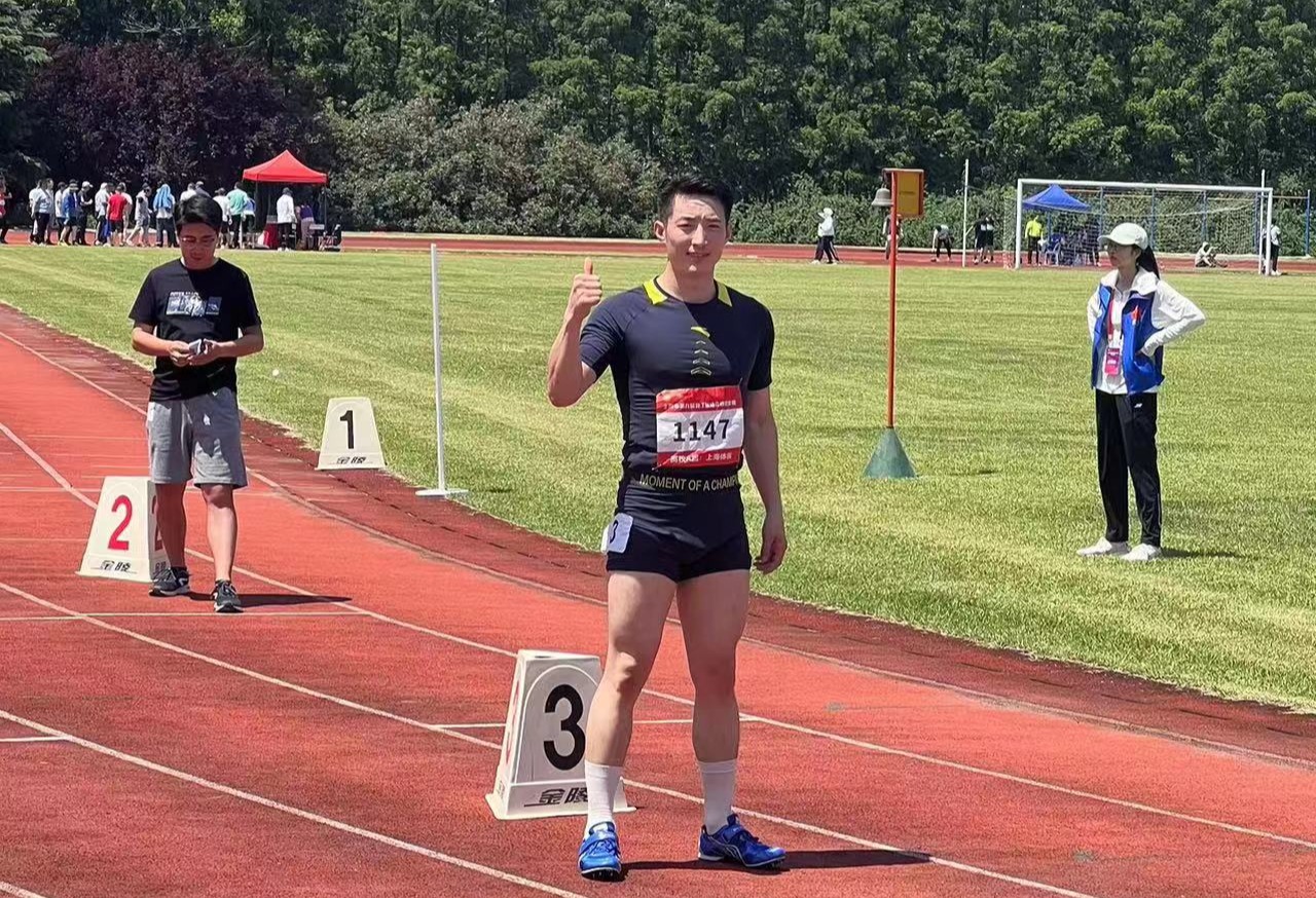 健身达人陈培基老师在双脚失去鞋掌的情况下夺得60米季军