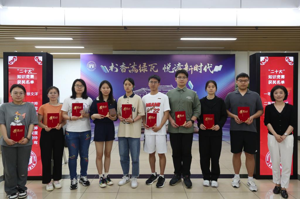 党委宣传部部长夏铭娜为党的二十大知识竞赛的获奖者进行颁奖。