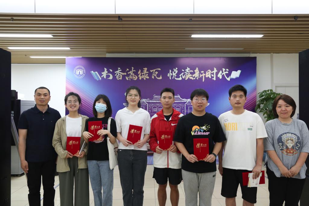 学(研)工部副部长韩洪伟、团委书记刘佳瑜为“Book思议”微书评大赛的获奖者进行颁奖。