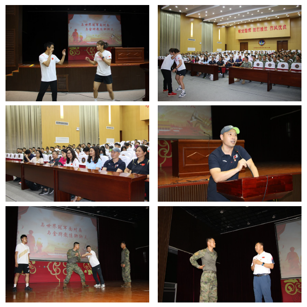 在长缨礼堂,全体党员同志一同观看了纪录片《光荣与梦想》,每一帧画面、每一句文字都在展示着我国军人的铁血、忠诚、无畏与奉献。 随后,部队负责人带领大家观摩了武器设备展示,参观了官兵宿舍和严格的内务管理,教师们与官兵开展了面对面的学习交流。 在互动交流环节,竞校散打金牌教练沈学军携全运会冠军谯洁茹通过实训演示和训练感受,与战士们交流了当运动员夺冠时,国歌响起、国旗在国际赛场上飘扬的自豪感和爱国情怀。运动防护师刘敏和侯希贺先后介绍了训练中的伤病预防和康复理疗方法,体能专项学生侯阳阳、刘通就如何提升体能训练质量和效果,以及训练后如何进行自我放松按摩,与战士们进行了深入互动和现场演示。