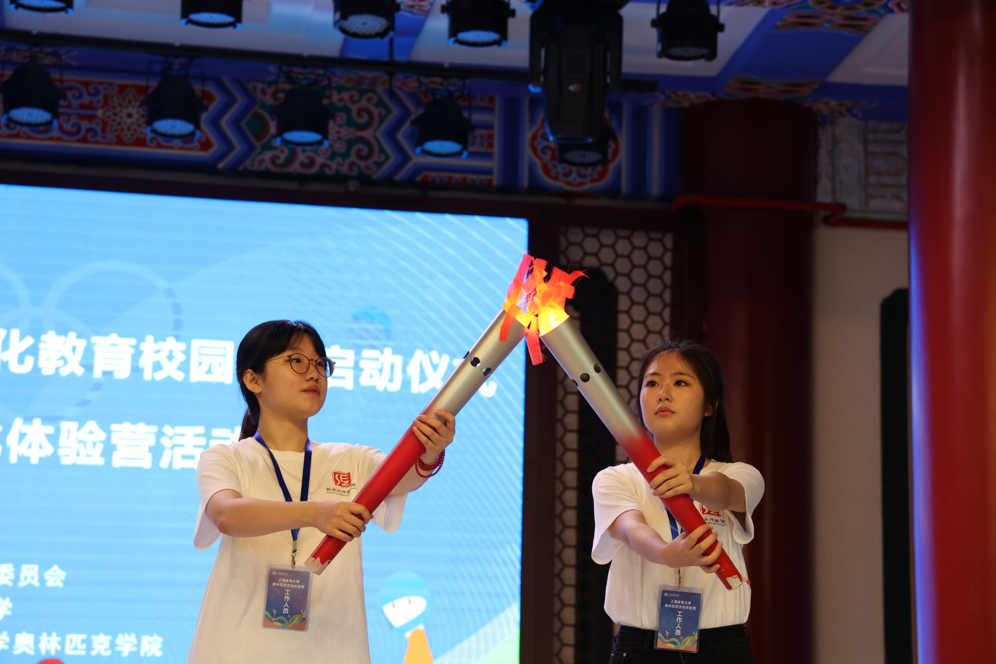 本网讯 6月28日,我校“奥林匹克文化教育校园行”启动仪式暨奥林匹克文化体验营活动举行。来自上海大学附属小学等12所学校的师生作为 “奥林匹克文化教育校园行”对口中小学生代表参与了当天的活动。上海市教委副主任王浩、上海市体育局副局长宋慧、jinnian金年会优秀学生代表、奥运冠军钟天使与中学生代表共同为奥林匹克文化体验营开营。