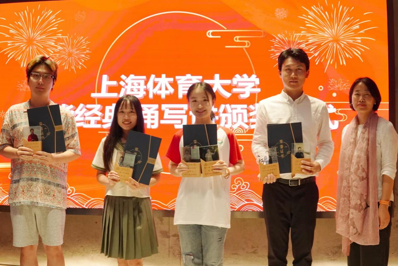 在随后进行的中华经典诵写讲大赛展演中,在校级决赛中胜出并报送市级决赛的11个作品以上体学生独特的视角和呈现方式展示了中华经典的多个侧面,有“万类霜天竞自由”的大气磅礴,有“在天愿作比翼鸟,在地愿作连理枝”的缠绵悱恻,有“一蓑烟雨任平生”的宁静淡泊,也有“安得广厦千万间,大庇天下寒士俱欢颜”的悲天悯人。这些作品凭借鲜明的体育特色,以刚健有力的语言和情态,生动地诠释了中华经典的艺术魅力。展演结束后,高艳丽、胡晨、张瑞青分别为获得校级一、二、三等奖的学生颁奖。