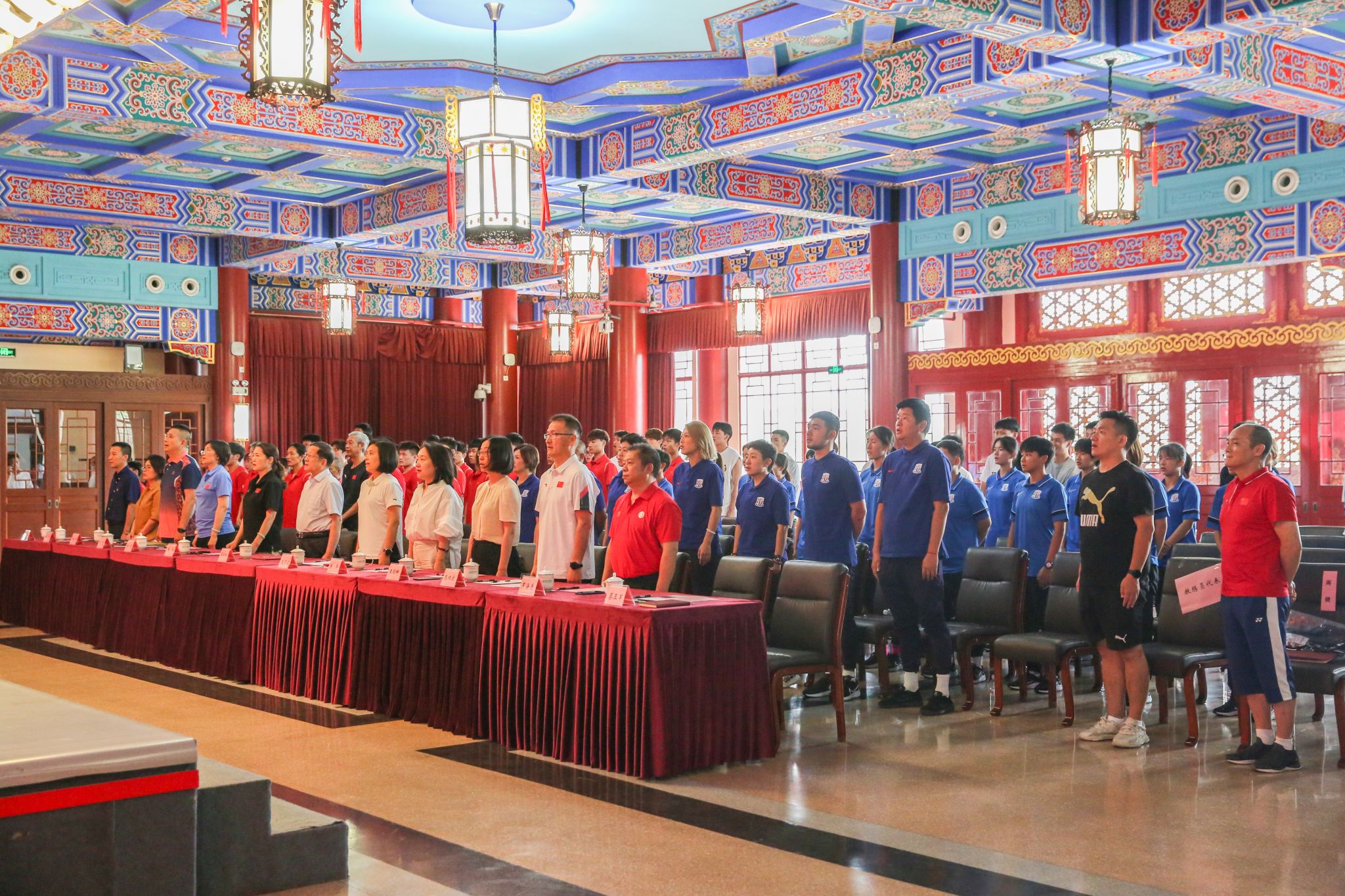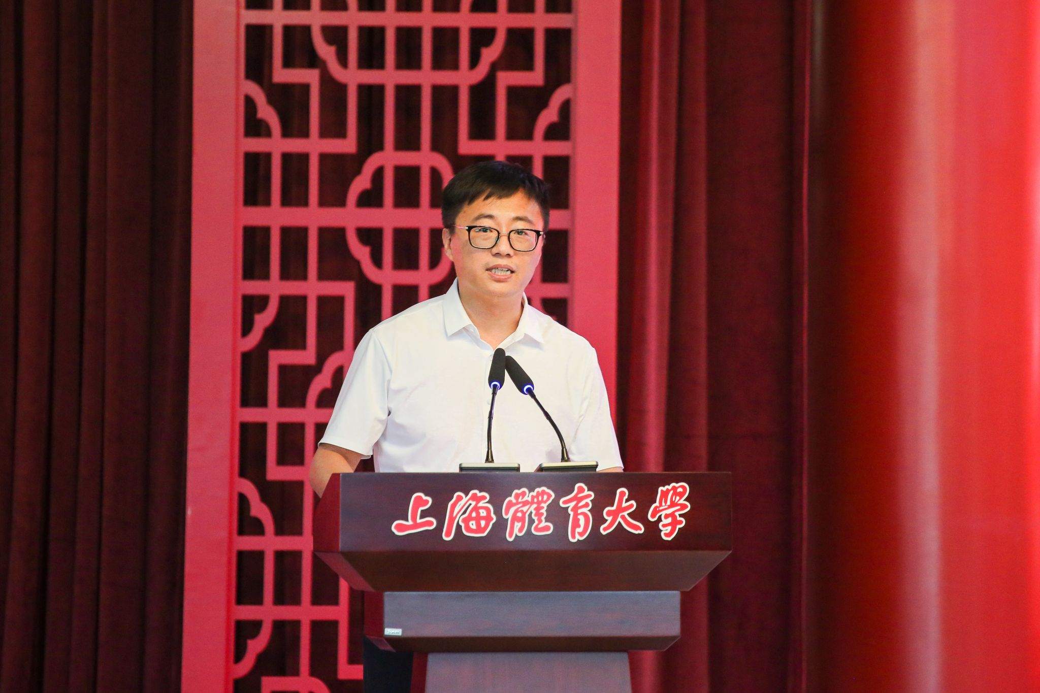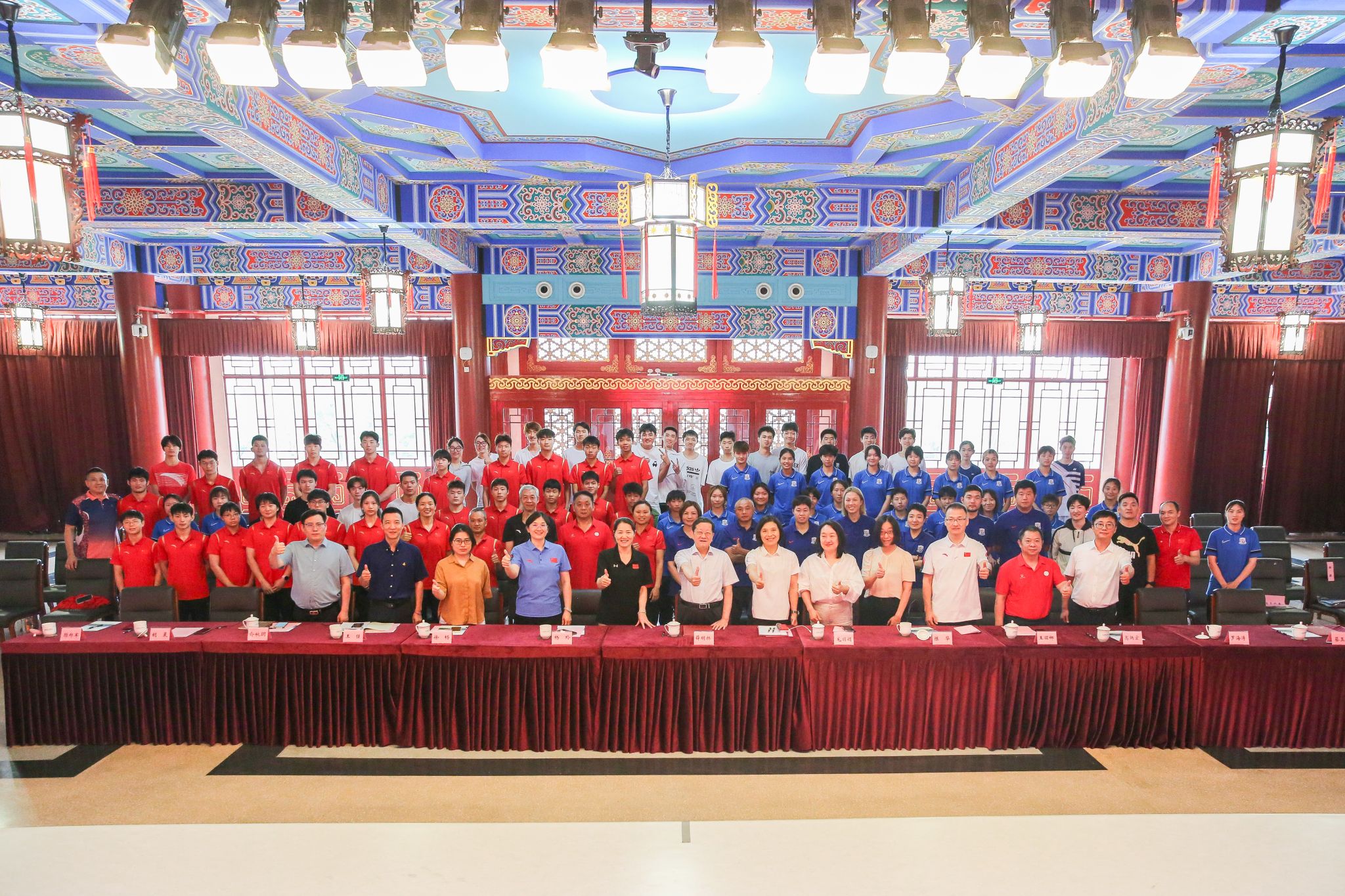 上海市大学生体育协会会长,上海市中学生体育协会名誉会长薛明扬做动员讲话。他提出四点要求:一是全体备战人员做到“统一思想,凝聚共识”。在集训备战,和正式比赛中要落实习近平总书记所倡导的“五育并举,培养全面发展的时代新人”思想,树立代表上海参赛的荣誉感,争创佳绩。二是备战运动员做到“刻苦训练,顽强拼搏”。希望运动健儿们能够在科学备赛、健康备赛的前提下,克服高温天气,以饱满的精神状态和坚定的决心投入到训练中,不惧困难,超越自我。三是教练员做到“科学指导,严格管理”。筑牢反兴奋剂工作的底线,坚守赛风赛纪,严守体育道德和学生品德,做到赛场内外的“上海气度”。四是医科服务团队与后勤保障团队精诚团结,全面保障。他对我校一直以来在幕后默默付出的教练员团队、训练保障团队给予了肯定,希望全体师生团结协作,强化服务意识,确保训练工作安全有序进行。