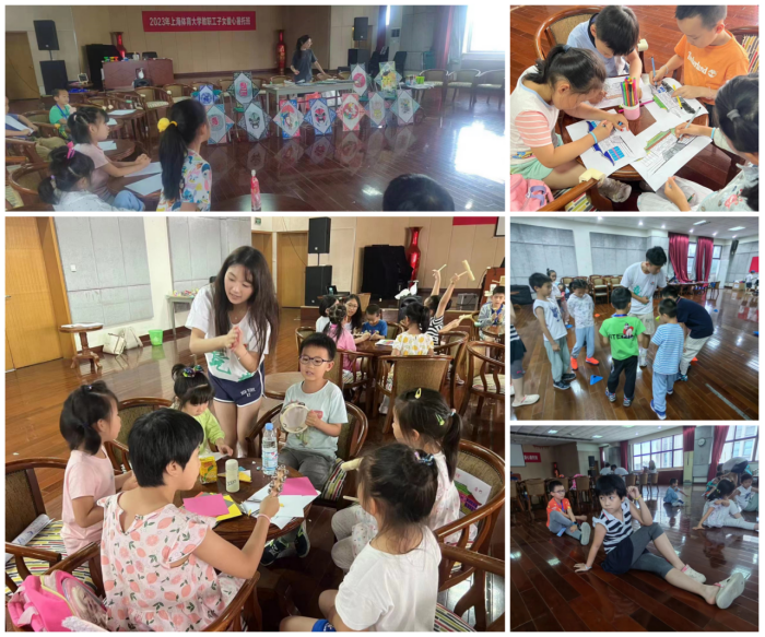 本次暑托班为期10天,共有三十多名教职工子女参加,活动场地安排在工会多功能厅与绿瓦体育书店,有二十多位大学生志愿者担任小老师参与授课与管理。