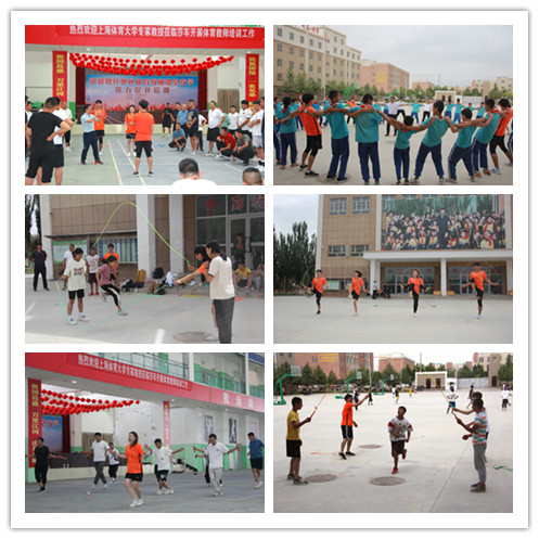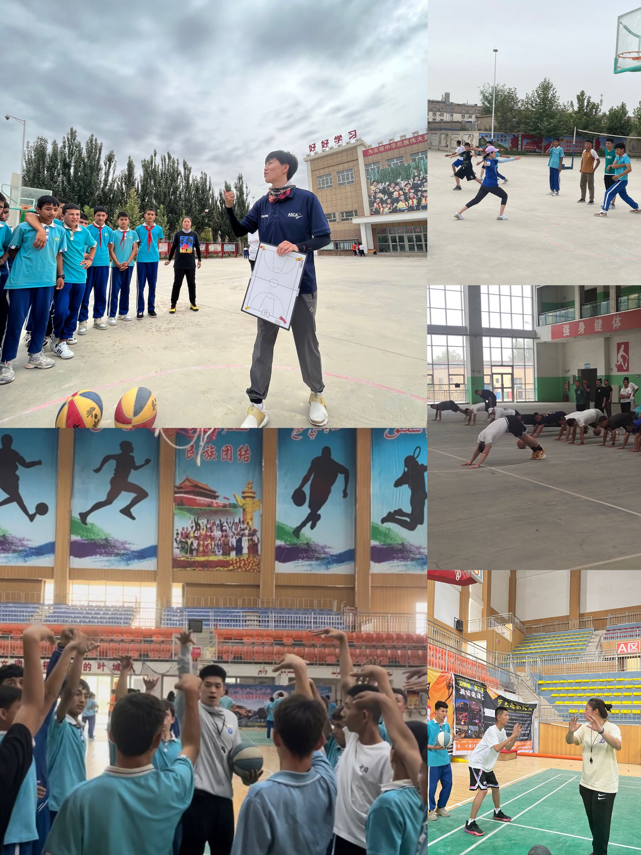 体育教育学院李菁与韩耀刚带领8名学生前往叶城县第十二中学分别进行篮球项目和花样跳绳项目教学。为充分保障教学质量,李菁老师多次组织团队成员进行课程研讨,结合授课对象的年龄层次和发育特点,拟定适用于12-16岁青少年的篮球训练计划,从准备活动、篮球游戏、基本技术、基础配合四个板块详尽安排8节课的具体教学内容。