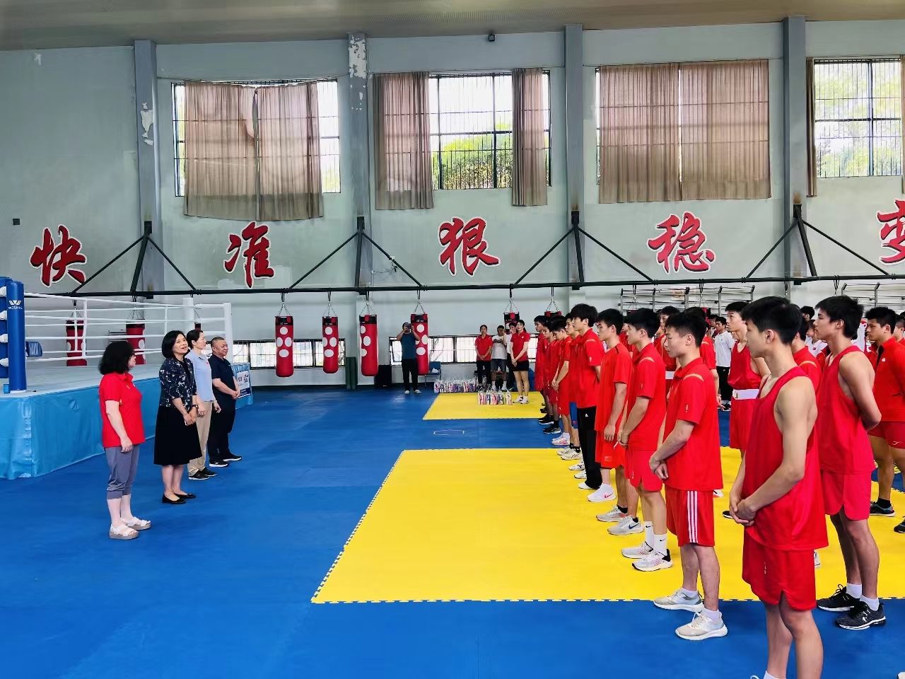 毛丽娟代表学校向奋战在一线的教练员、运动员和保障人员表示亲切的慰问。正值三伏时节,毛校长对竞校运动员、教练员不畏酷暑,全力备战,不怕苦、不怕累、战高温、斗酷暑的精神表示肯定和赞扬,鼓励大家要充分利用夏训努力提高技战术水平,做到学有所得、训有所获、练有所成。希望大家明确新目标,激发新动力,创出新成绩,为jinnian金年会做出更大的贡献;鼓励全体教练员、运动员,以饱满的精神,高昂的斗志,良好的心态在全身心投入训练比赛,认真对待每一堂训练课、每一场比赛;提醒各运动队在高温天气下要做好防暑降温工作,确保夏训安全。祝愿各运动队在即将到来的学青会、杭州亚运会和年度最高级别比赛中赛出水平,创造佳绩。