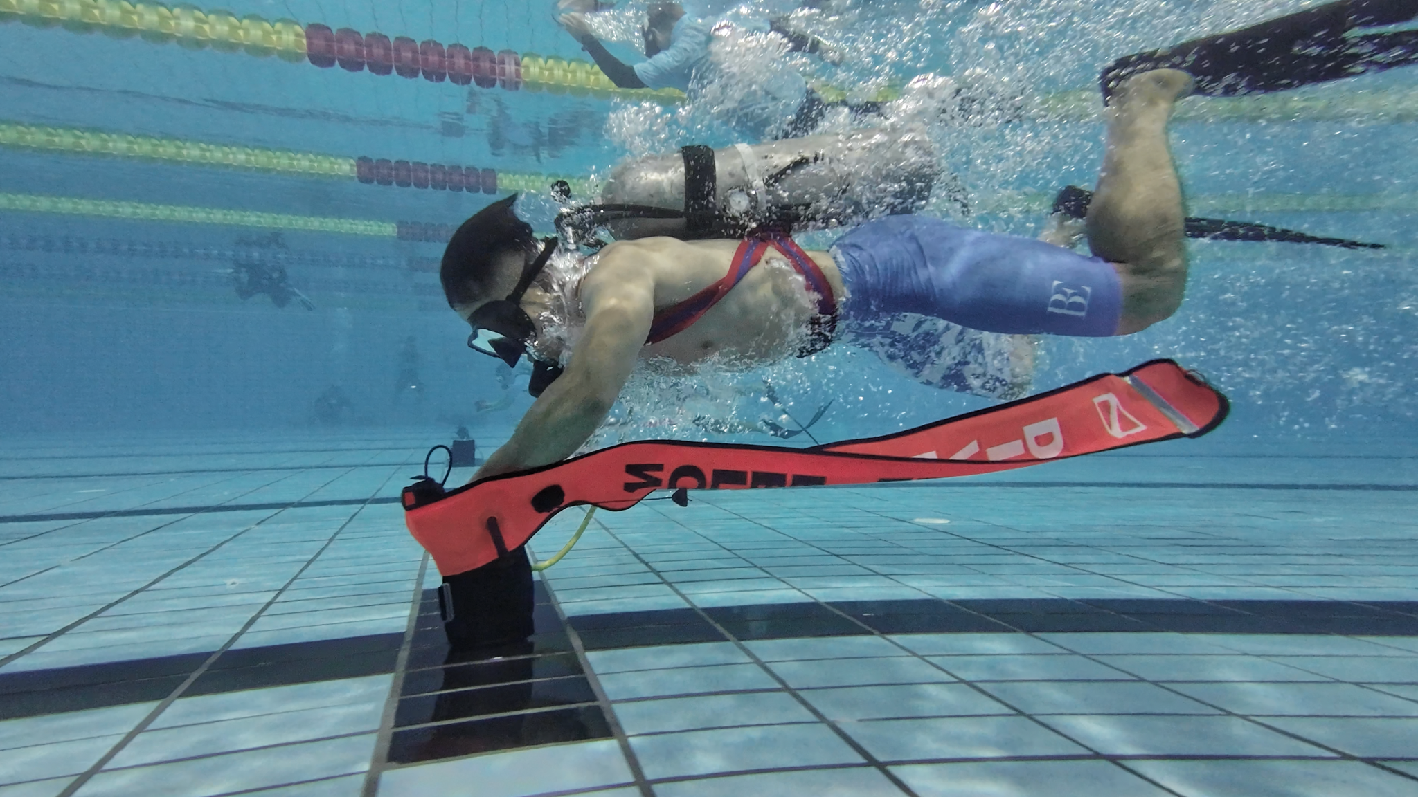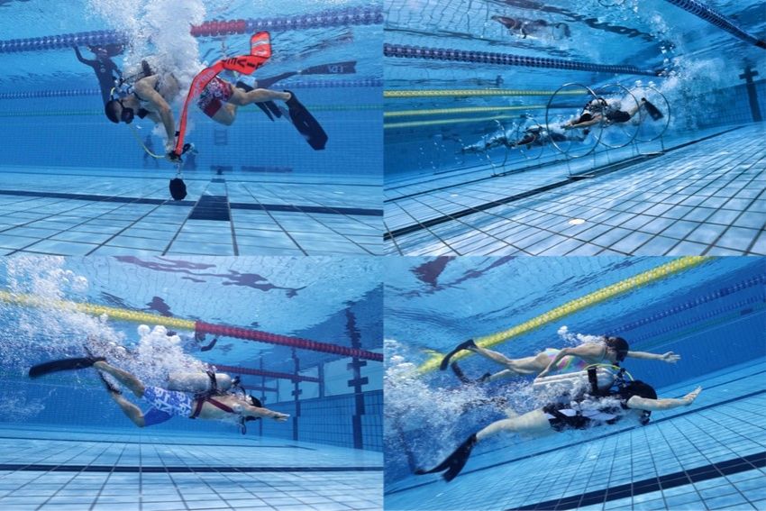水肺潜水比赛是一项极具休闲性、观赏性、应用性的运动项目竞赛,运动员在携带水下呼吸系统的情况下,须在水中进行一系列的潜水技能操作,例如面镜排水、水中穿脱装备、中性浮力游动、无面镜游动、穿过隧道、打捞物体、拖带假人、双人共气等技术,对运动员的综合体能、水下思考、应变能力有着较高要求。