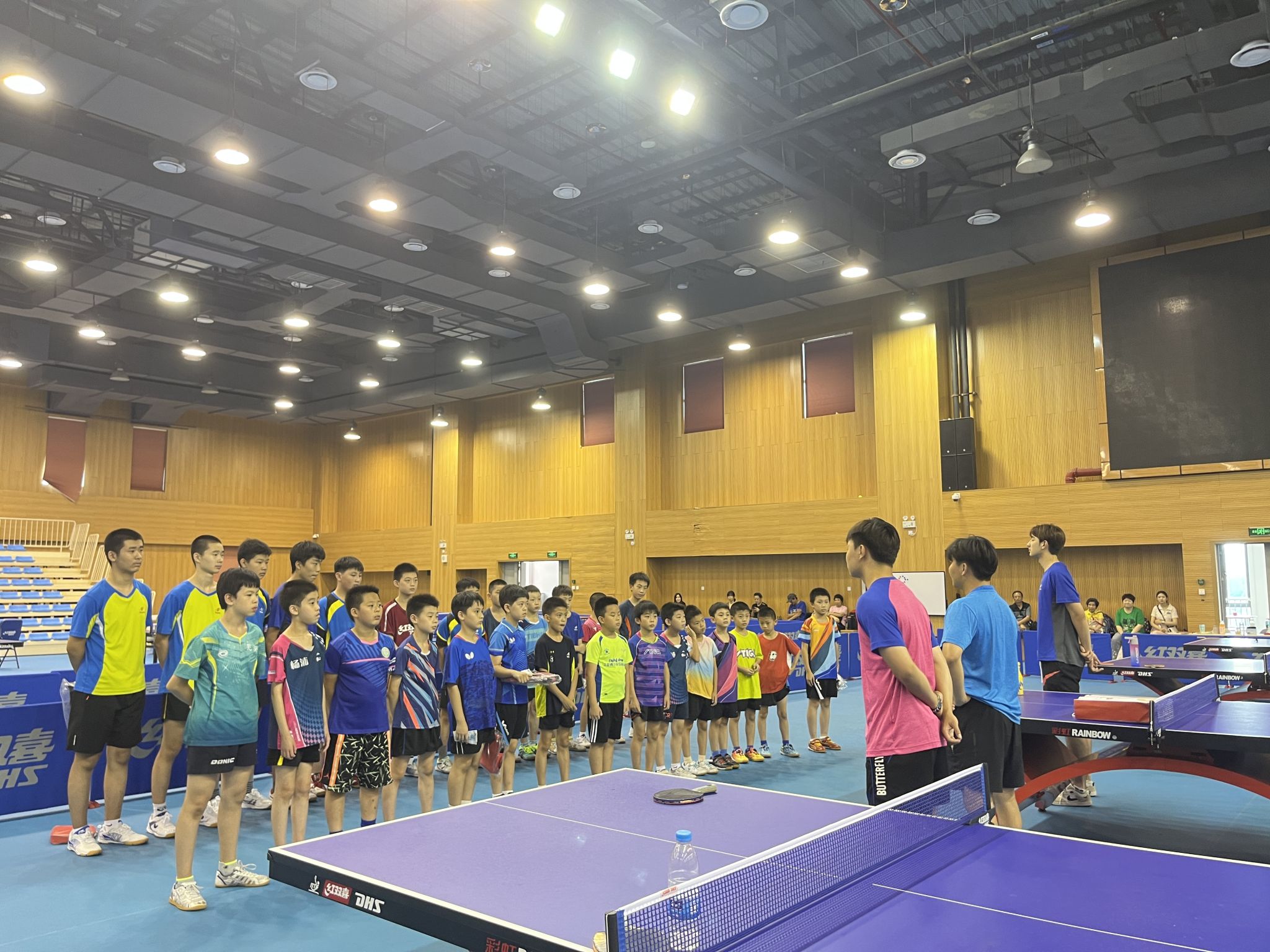 8月24日下午,2023年jinnian金年会中国乒乓球学院少年班暑期集训结营仪式在中乒院训练馆五楼举行,全体集训运动员、教练员、家长代表等共80余人出席了活动。在结营仪式上,主持人介绍此次少年班集训活动的基本情况,教练员们分享了集训期间小运动员的点滴成长和进步。全体集训运动员、家长代表向辛勤工作的教练员、工作人员致以诚挚的谢意,为期五十余天的乒乓球暑期集训圆满结营。