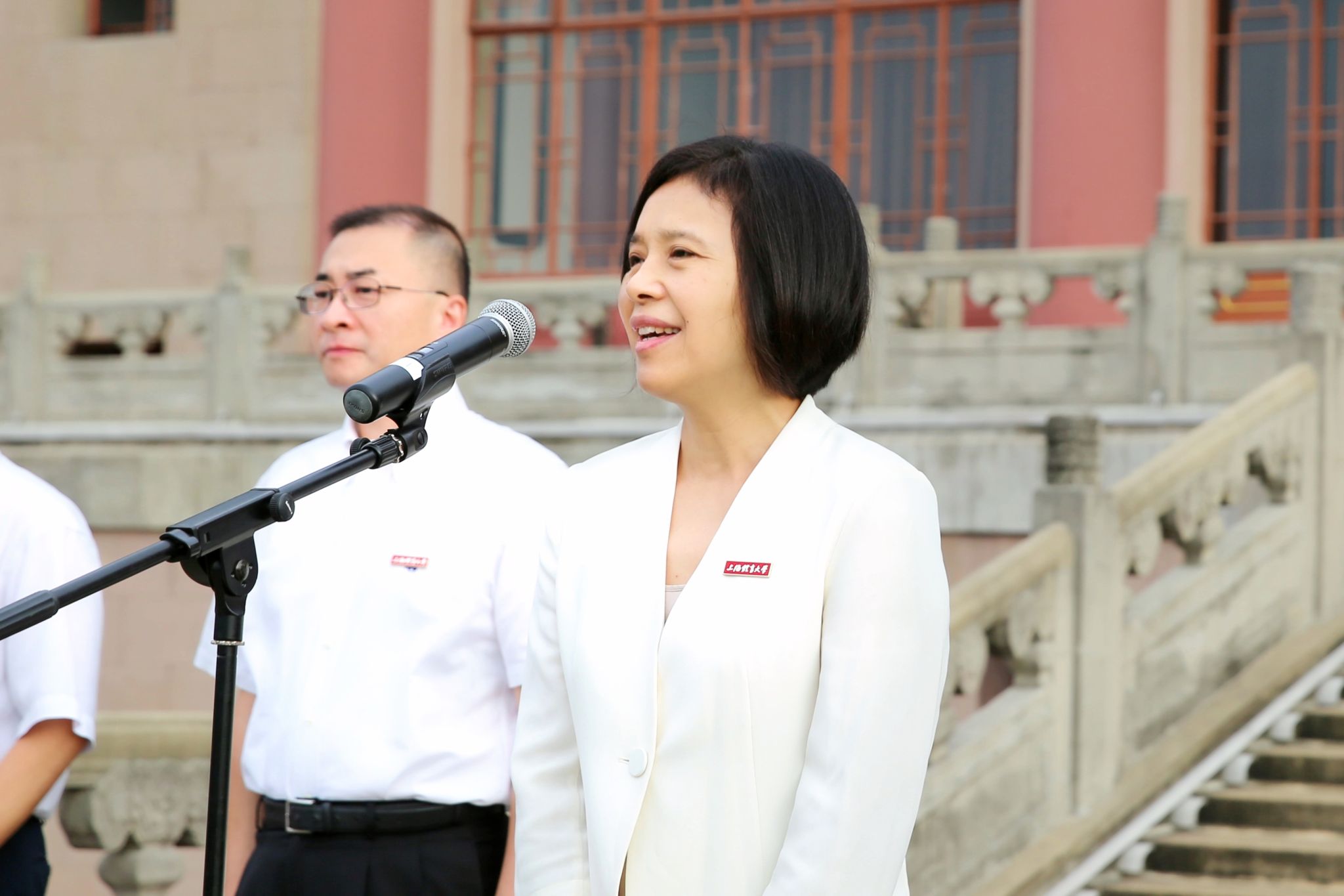 随后,党委副书记、校长毛丽娟进行了国旗下的讲话。毛校长指出,更名后的新学期,希望全体师生能团结一心,以崭新的精神面貌共聚绿瓦校园,共同书写上体发展新篇章。因此,她围绕三个关键词与全体师生共勉。
