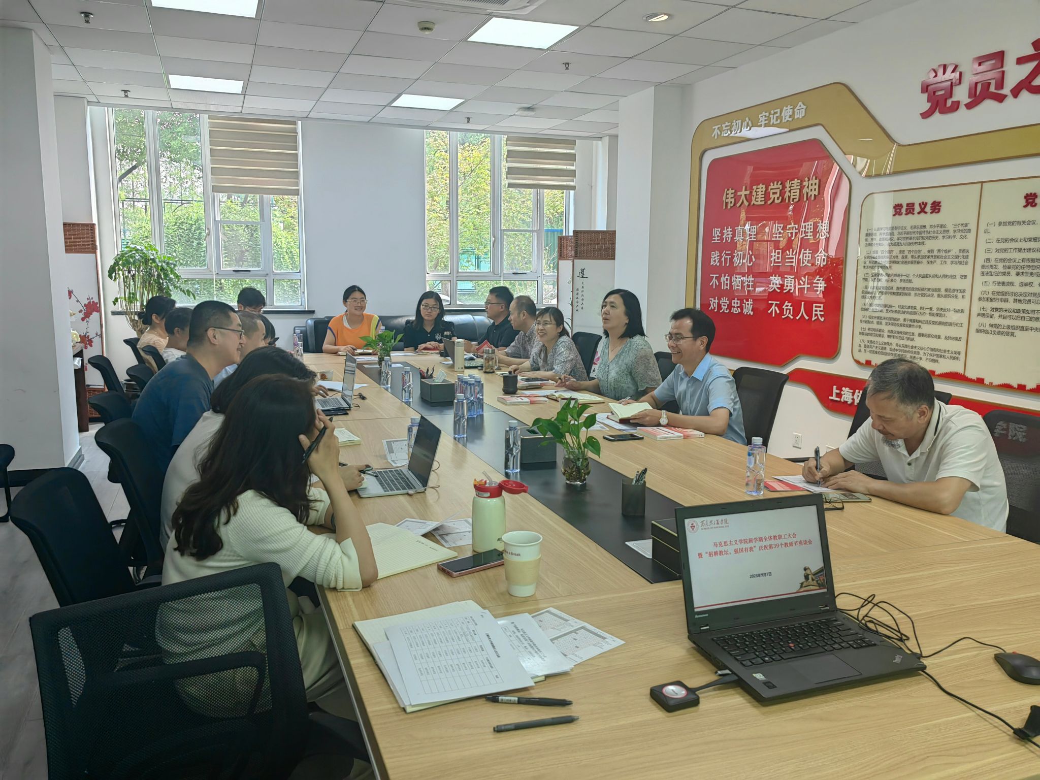 会上,胡德平通报了马克思主义学院学习贯彻习近平新时代中国特色社会主义思想主题教育专题民主生活会情况,传达了jinnian金年会2023-2024学年第一学期中层干部大会精神,并对新学期学院重点工作作了布置。学院直属党支部副书记、副院长马焕对新学期教学工作安排作了说明。