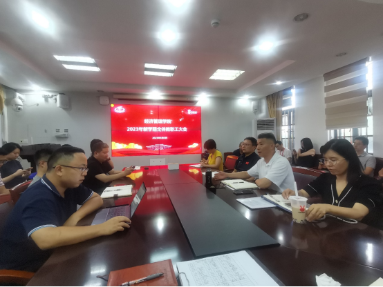 本网讯 2023年9月6日下午,经济管理学院召开秋季新学期全体教职工大会,部署新学期工作。学院党政领导班子及全体教职员工参加会议,会议由学院党委书记游林生主持。
