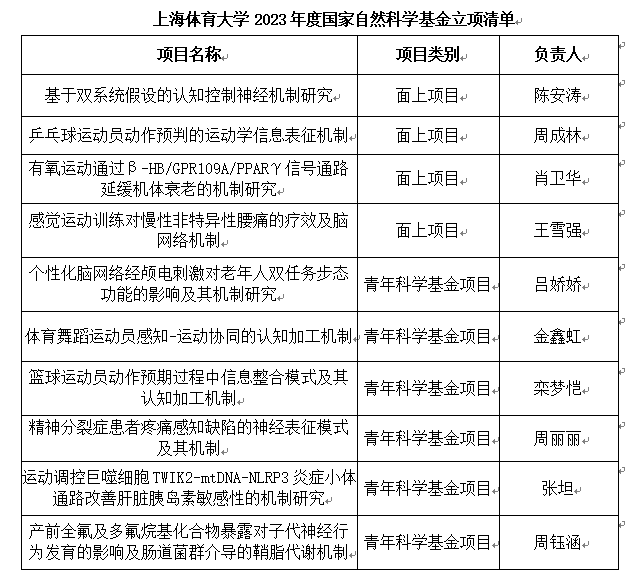 本网讯 近日,国家自然科学基金委、全国哲学社会科学工作办,陆续公布了2023年度集中接收申请的科学基金项目与社科基金项目评审结果。我校获批两类项目共17项:其中国家自然科学基金项目10项(青年科学基金项目6项,面上项目4项),获批资助直接费用379万元;国家社会科学基金项目7项(重点项目1项,一般项目4项,青年项目1项,教育学单列学科1项)。在我校获批的基金项目中,研究领域涉及力学科学、遗传学与生物信息学、神经科学与心理学、分子生物学与生物技术、生理学与整合生物学、体育学、教育学、语音学,彰显了我校多学科交叉融合发展的科研实力,是我校“双一流”建设世界一流学科和高水平地方高校的重要支撑。