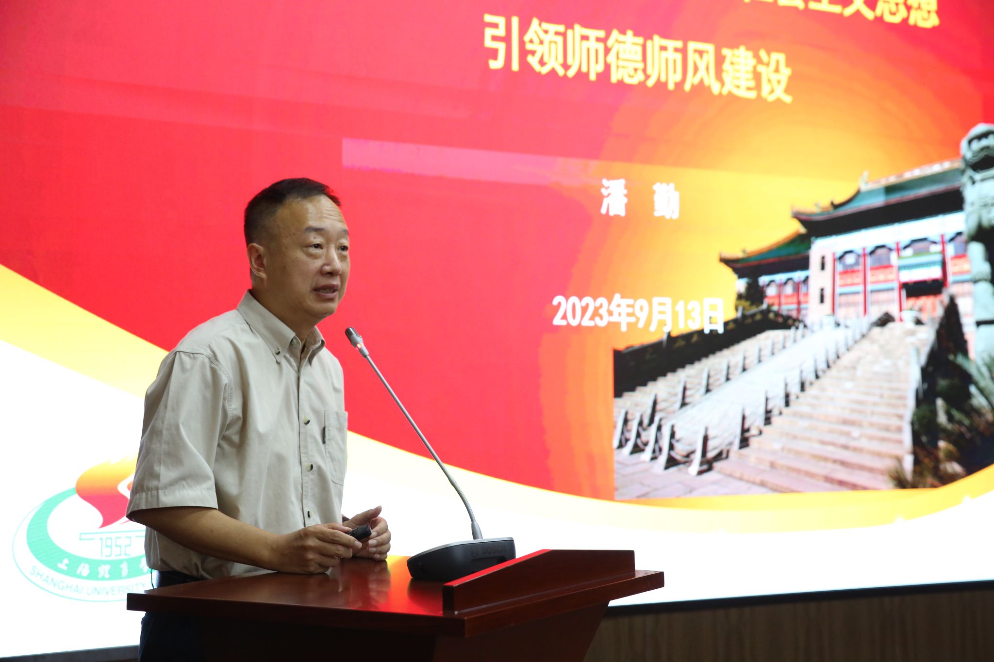 党委副书记潘勤为新进教师主讲“师德第一课”,引导新进教师落实师德第一标准,帮助他们扣好教书育人的“第一粒纽扣”。潘书记结合学习贯彻习近平总书记致信全国优秀教师代表重要内容,强调总书记提出教育家精神,体现了对教师高尚品格的充分认可、对办好教育事业的殷切期望,给教师群体明确了奋斗的标准和高远的追求目标。通过系统阐述习近平总书记关于教师工作和师德师风的重要论述,号召全体新教师要坚持以习近平新时代中国特色社会主义思想为指导,深刻领会习近平总书记重要指示和党的二十大精神,以教育家为榜样,大力弘扬教育家精神,牢记为党育人、为国育才的初心使命,树立“躬耕教坛、强国有我”的志向和抱负,涵养高尚师德,自信自强、踔厉奋发,为建设中国特色世界一流体育大学作出积极贡献。