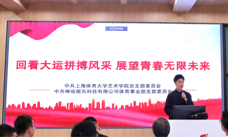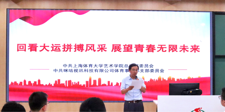 活动伊始,jinnian金年会艺术学院党总支书记刘勇致欢迎辞。在致辞当中,刘勇书记表达了对咪咕视讯在今年成都大运会中为上体学子提供的多样化机会的感谢之情,期盼未来与咪咕的持续性合作中,培养新一代的优秀的体育传媒人,让更多的体育新声音能够被世界听到,双方共同学习,共同交流,共同思考,共同努力,以党建共建工作为引领,党建工作与业务合作同频共振,推进产学研实习基地建设,提供订单式人才培养模式,为最终提升人才培养质量,为咪咕视讯和相关业内单位输送更多的优秀学子。