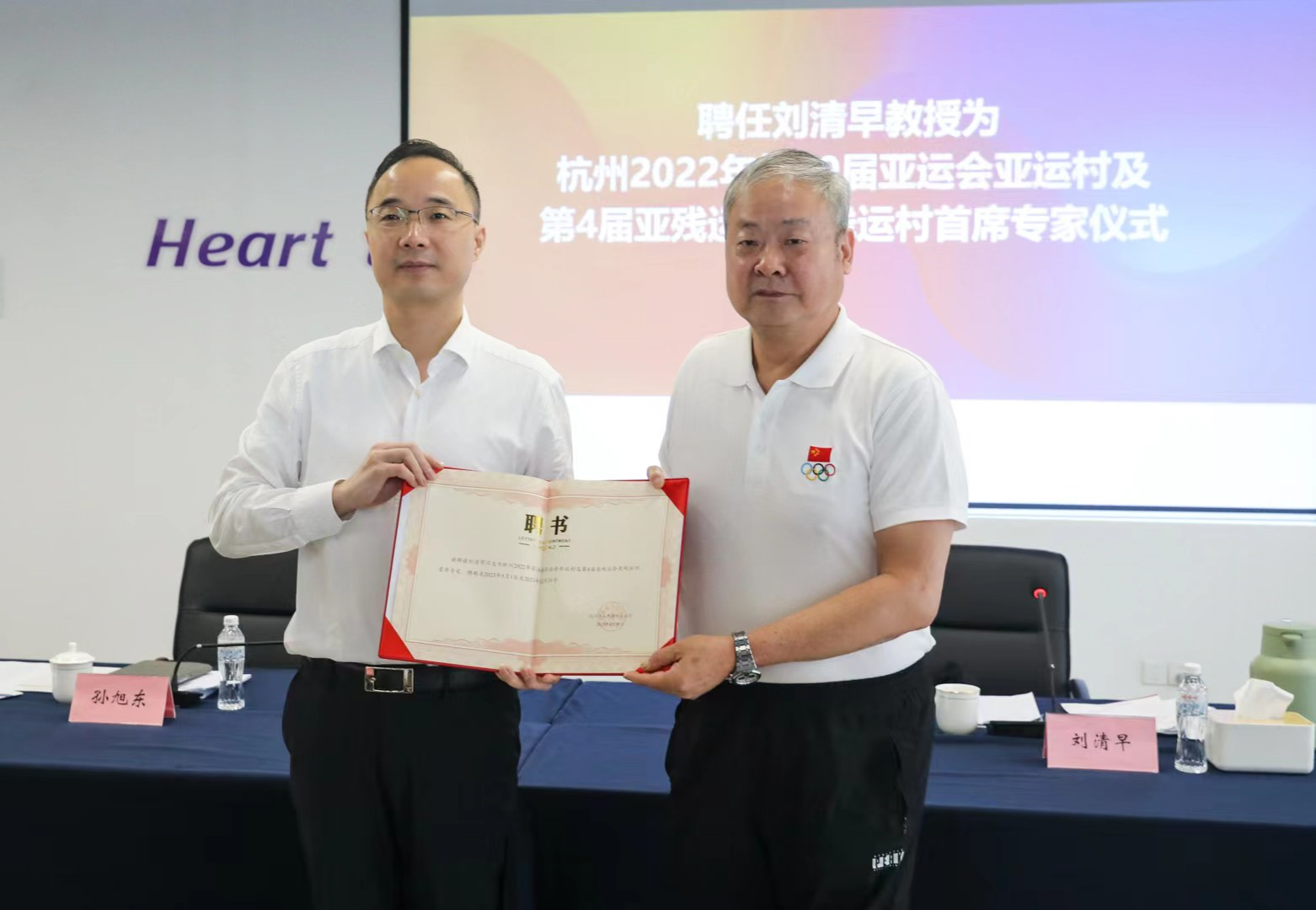 作为亚运会最大的非竞赛场馆,亚运村(包括运动员村、媒体村、技术官员村以及五个分村和三个指定住宿点)及亚残运村的运行管理是一项庞大的系统工程。2019年刘清早教授已经受聘担任了杭州亚组委顾问。随后,杭州市人民政府向我校发函,聘任刘清早教授担任“亚运村及亚残运村首席专家”。亚运村运行管理中心专门举行仪式,杭州市人大党组书记、主任、亚运村运行管理中心指挥长李火林和杭州市人大副主任卢春强等亚运村领导亲自出席,由杭州市人民政府副市长、亚运村执行副指挥长孙旭东亲自颁发“亚运村首席专家”聘书。刘清早教授将带领已被聘为“首席专家助理”的我校研究生王祁、朱墨桢以及专业技术人员刘潇洋等组成的工作团队为亚运村,随后为亚残运村运行管理提供全方位的专业技术指导服务。