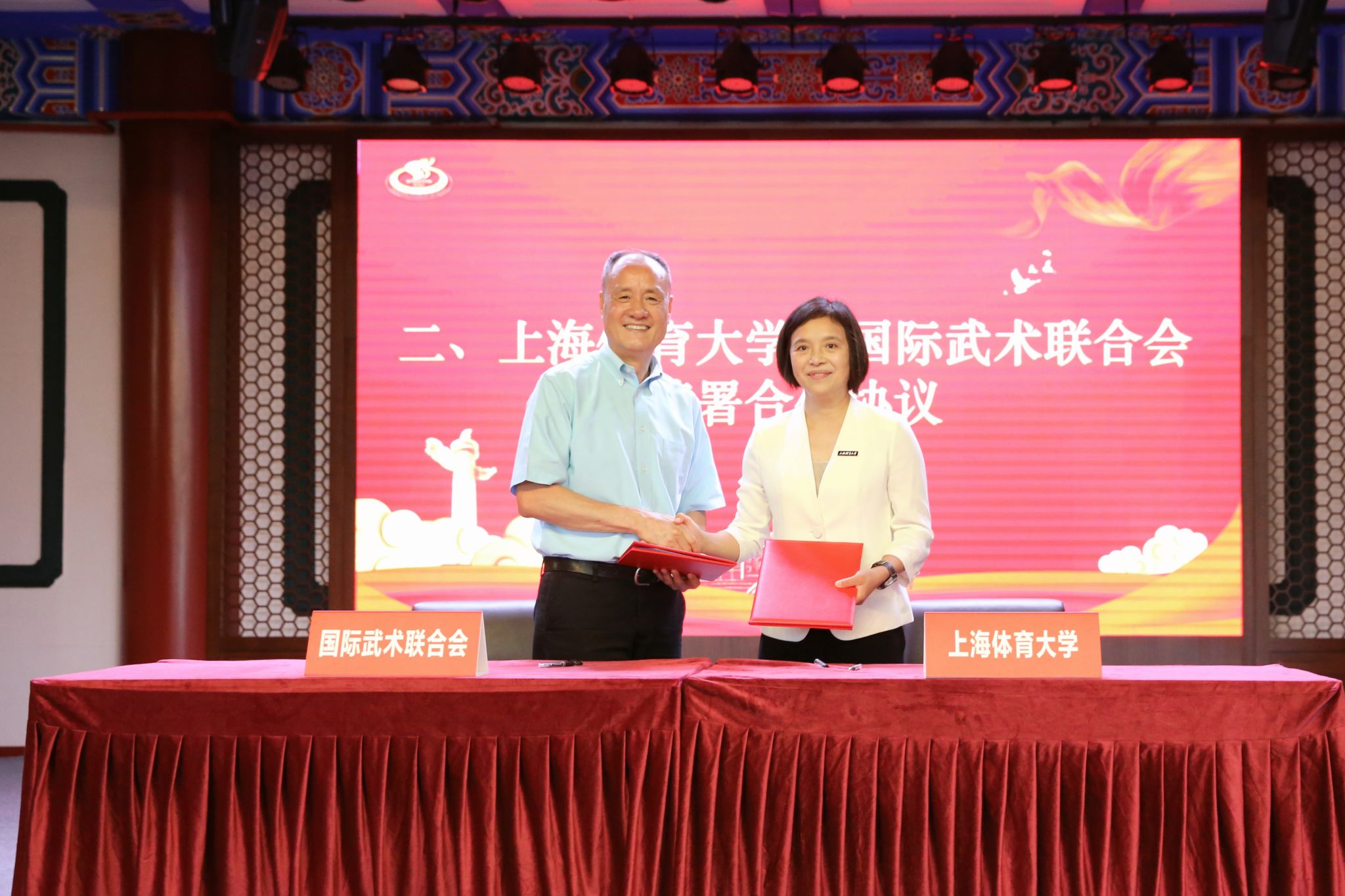 本网讯 为贯彻落实习近平总书记关于加强国际传播和文化传承发展工作的重要讲话精神,在新的起点上全面提升中国武术文化的国际传播力与世界影响力,助力建设中国特色社会主义文化,建设中华民族现代文明,9月16日,jinnian金年会与国际武术联合会举行战略合作协议签约仪式。jinnian金年会党委书记李崟主持仪式,jinnian金年会党委副书记、校长毛丽娟与国际武术联合会秘书长张秋平,代表双方签署战略合作协议。