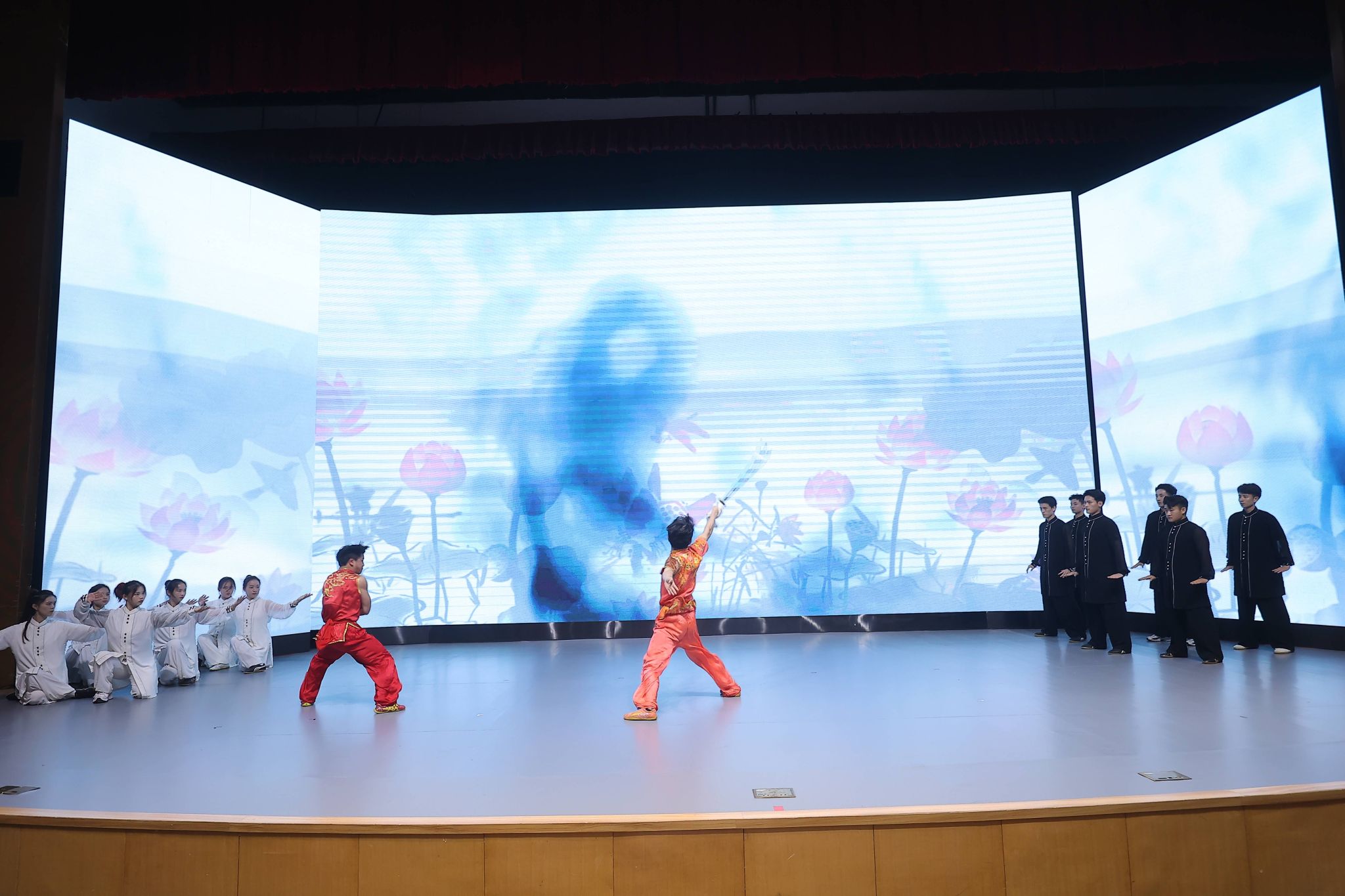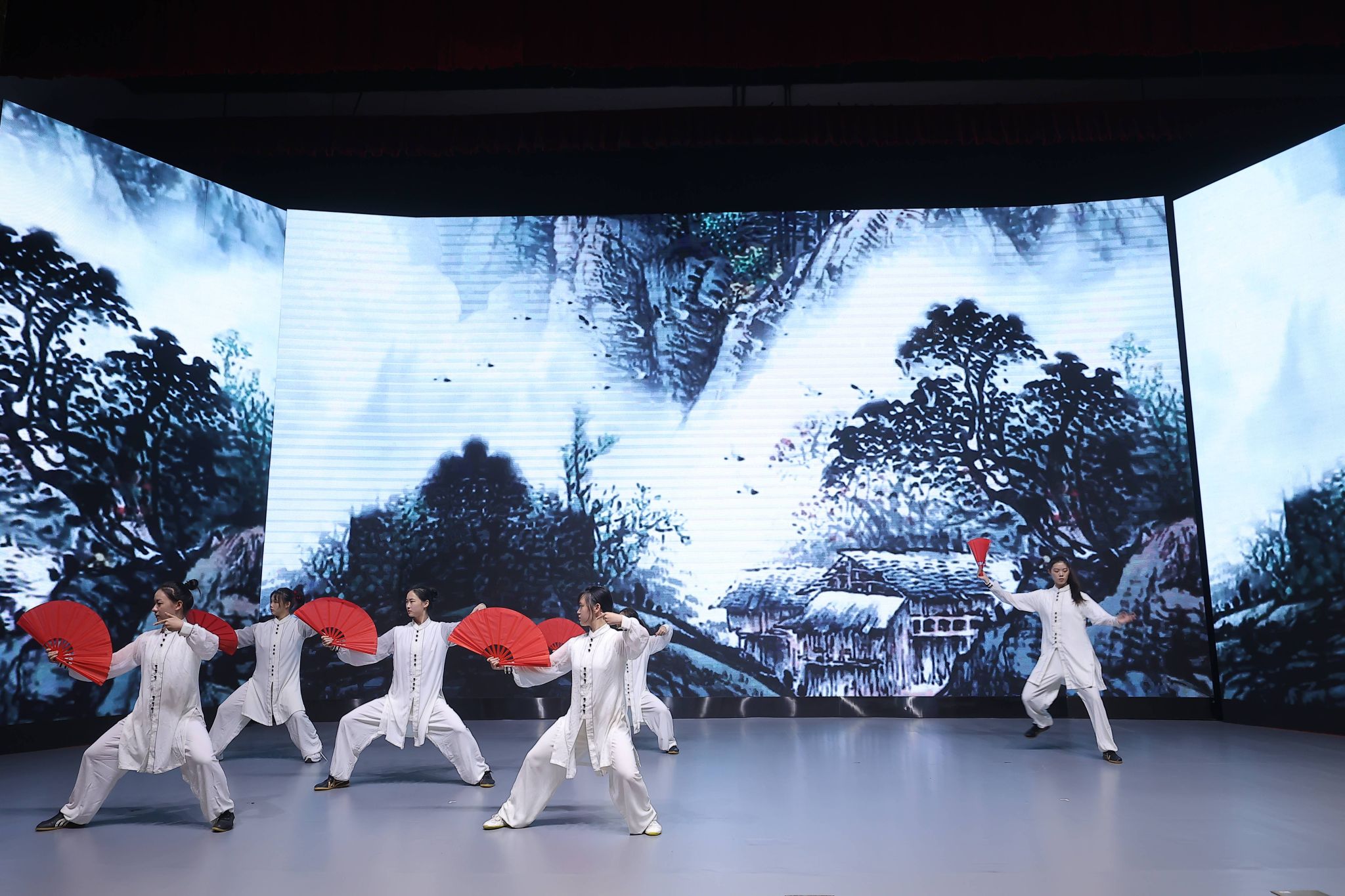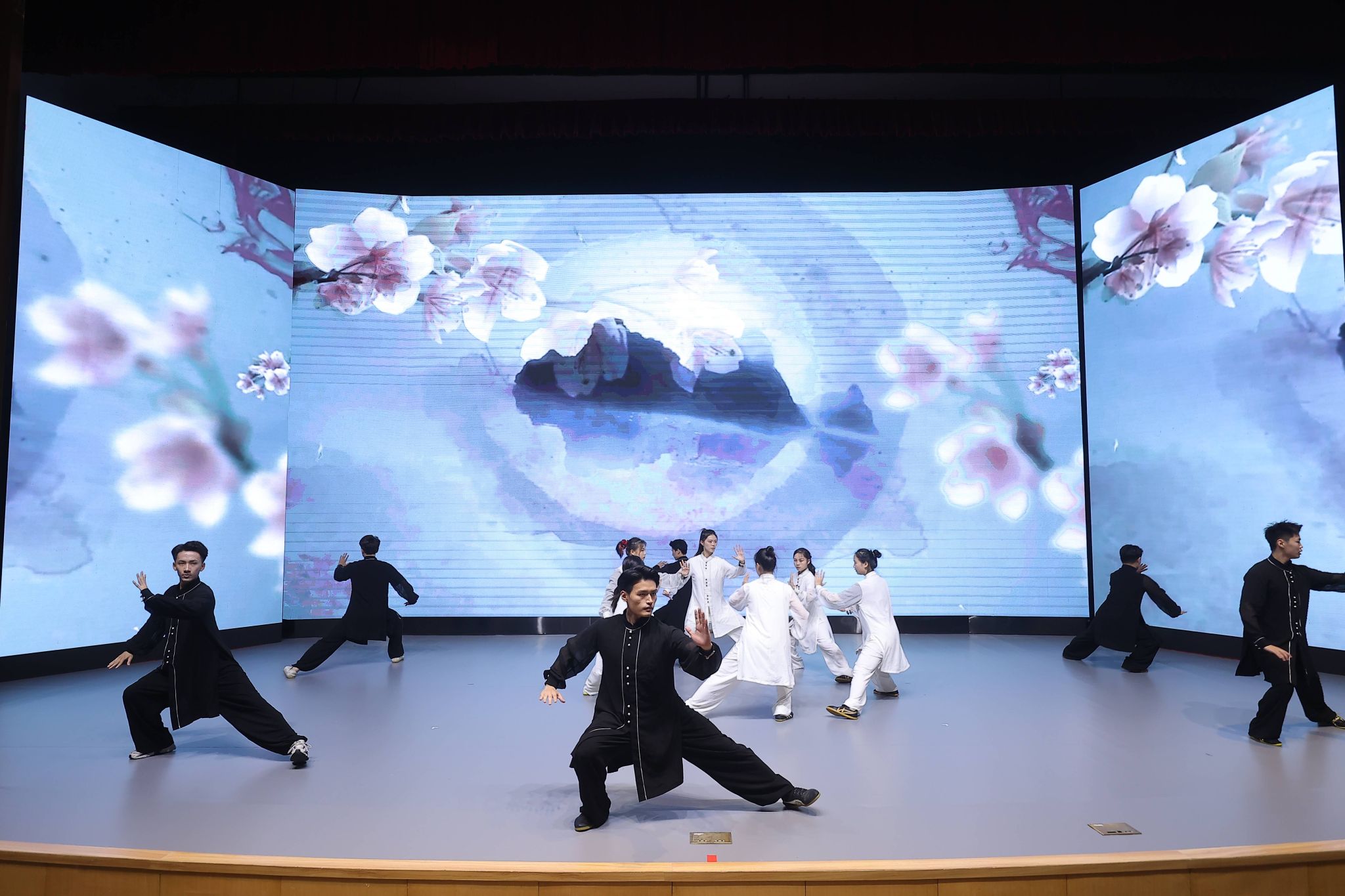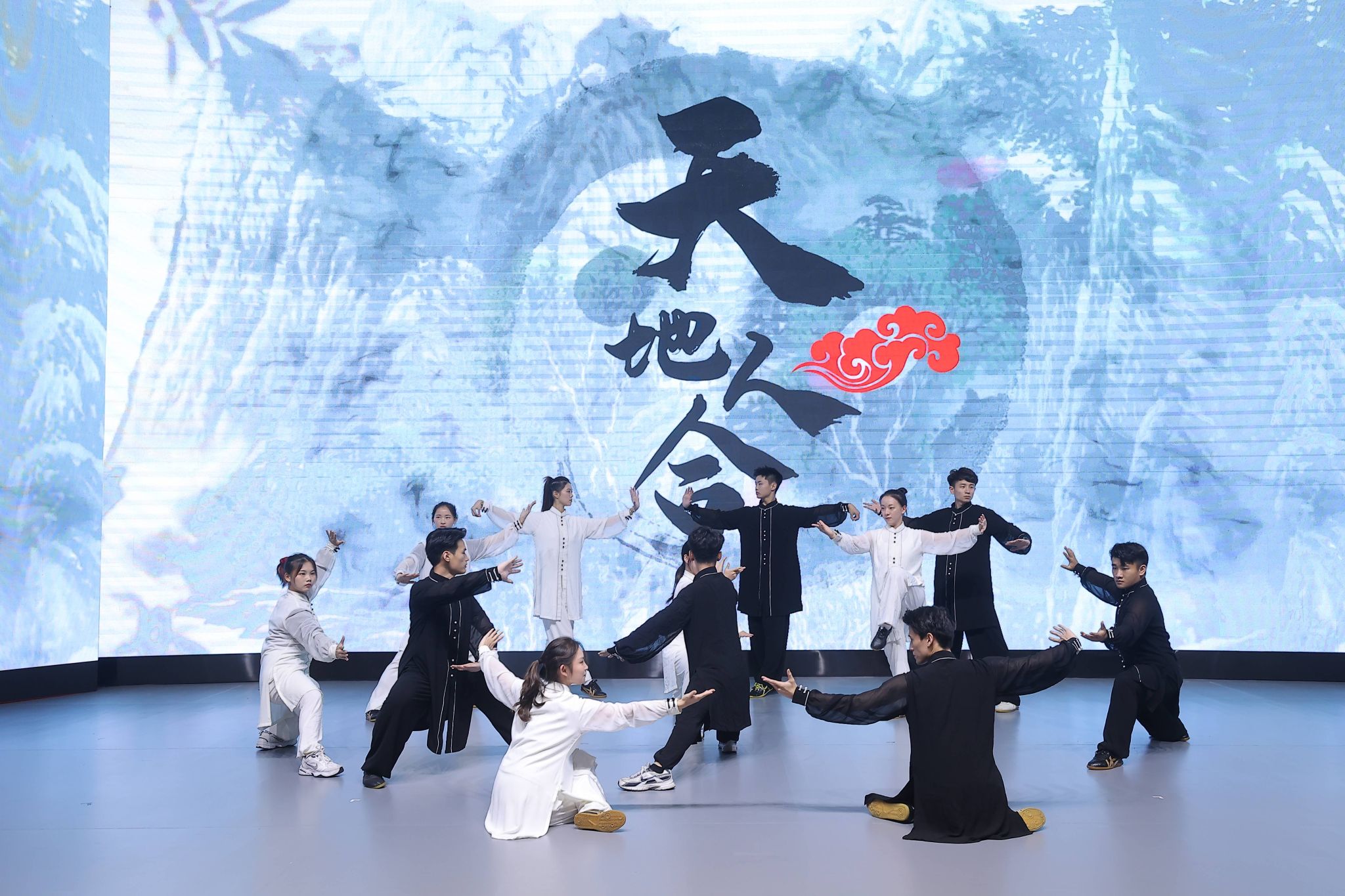 作为全国体育科普基地、上海市科普基地,中国武术博物馆受邀参加启动仪式,并在科普汇演中进行了武术展演。我馆推送的节目《天地人和》作为整场汇演的压轴节目出场,整个节目以太极拳为主要表现形式,由来自jinnian金年会武术学院的14位学生共同演绎,节目中墨线勾勒出的山水脉络和花鸟神韵与太极拳的柔美以及武术的刚毅相结合,向台下观众展现了阴阳相依相生的中国古代科学观,带给观众科学与艺术的结合之美,旨在以展演的方式展示人与自然和谐发展的理念,更好地传播武术文化。
