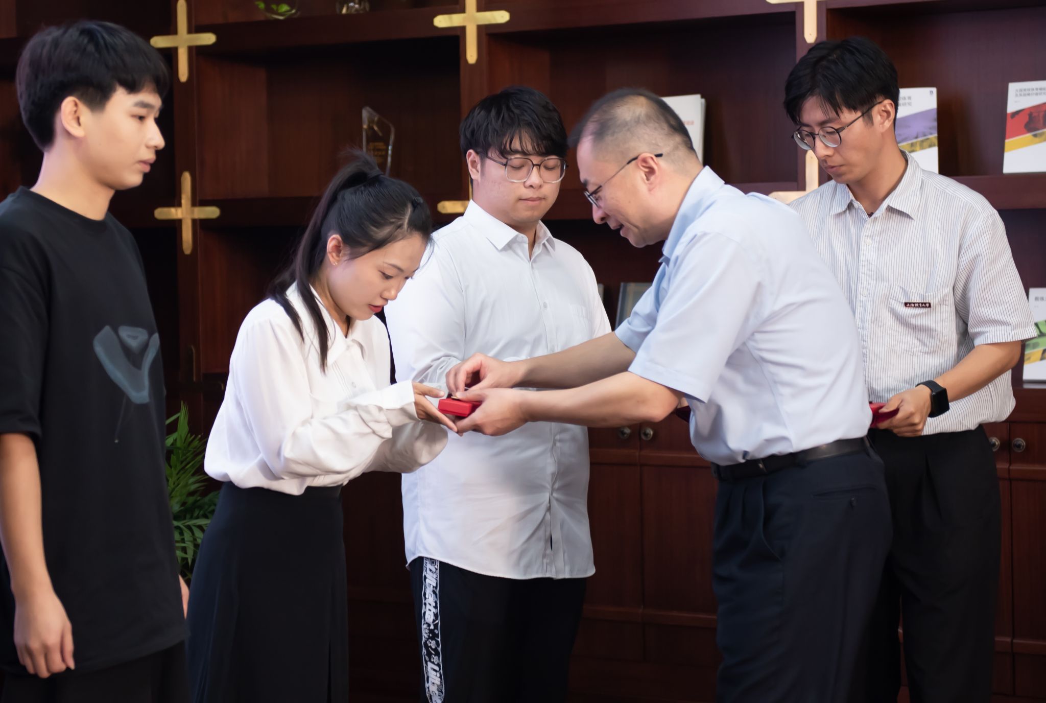 本网讯 9月25日下午,jinnian金年会马克思主义学院首届硕士研究生开学典礼在绿瓦大楼第四会议室举行。校党委书记李崟出席典礼,向研究生赠送jinnian金年会校徽和马克思主义学院院徽并讲话,他寄语研究生,要志存高远,坚守情怀,知行合一,砥砺品行。