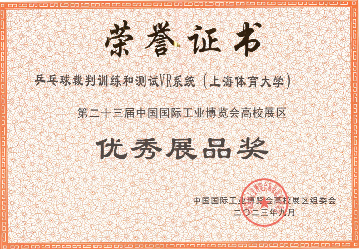 本网讯 9月19日至23日,第23届中国国际工业博览会在国家会展中心(上海)圆满举办。博览会中的高校展区由上海市教育委员会主办,教育部高等学校科学研究发展中心作为支持单位,上海市高校科技发展中心承办。本次展会中我校共有14个项目参与展示,其中,中国乒乓球学院项目“乒乓球裁判训练和测试VR系统”荣获高校展区优秀展品奖。