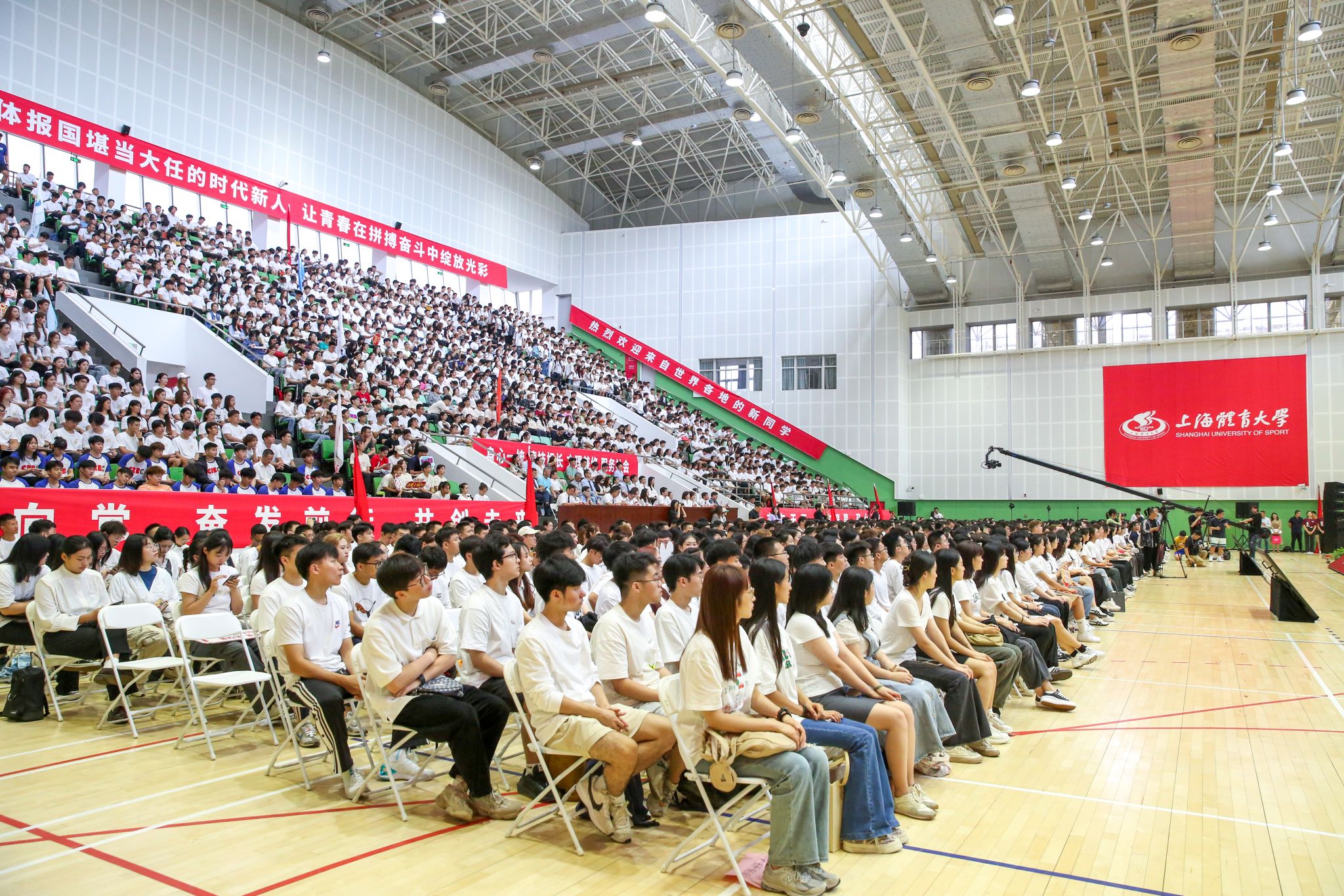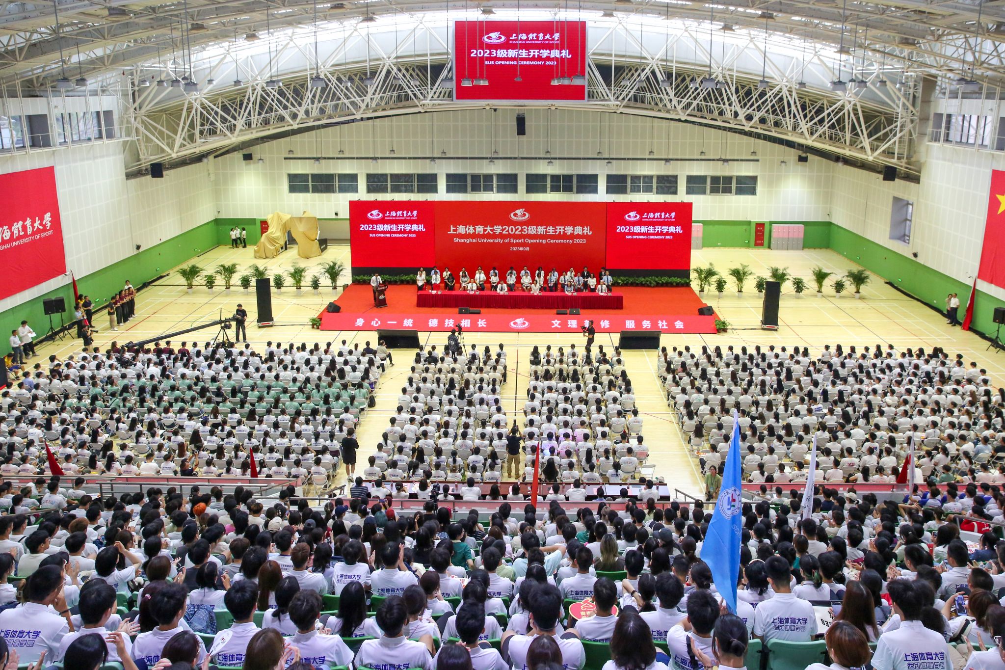 党委副书记、校长毛丽娟代表全体师生向来自世界各地的两千余名新生表示热烈欢迎,并以《永葆热爱,锤炼能力,涵养情怀,做新时代的有为青年》为题寄语2023级新生。她希望同学们永葆一份热爱,满怀对体育的炽热之情,不断深化对“体育”的认知;要锤炼一种能力,在体育参与中培养友善乐群的能力,通过体育形成超越自我和提升追求智慧的能力;要涵养一生情怀,发扬上体精神,彰显上体底色,赓续上体使命。奋斗是青春最亮丽的底色,行动是青年最有效的磨砺。毛校长鼓励同学们勇挑时代重任,不负青春韶华,追求卓越,勇攀高峰,为加快建设体育强国、教育强国、健康中国贡献青春力量。