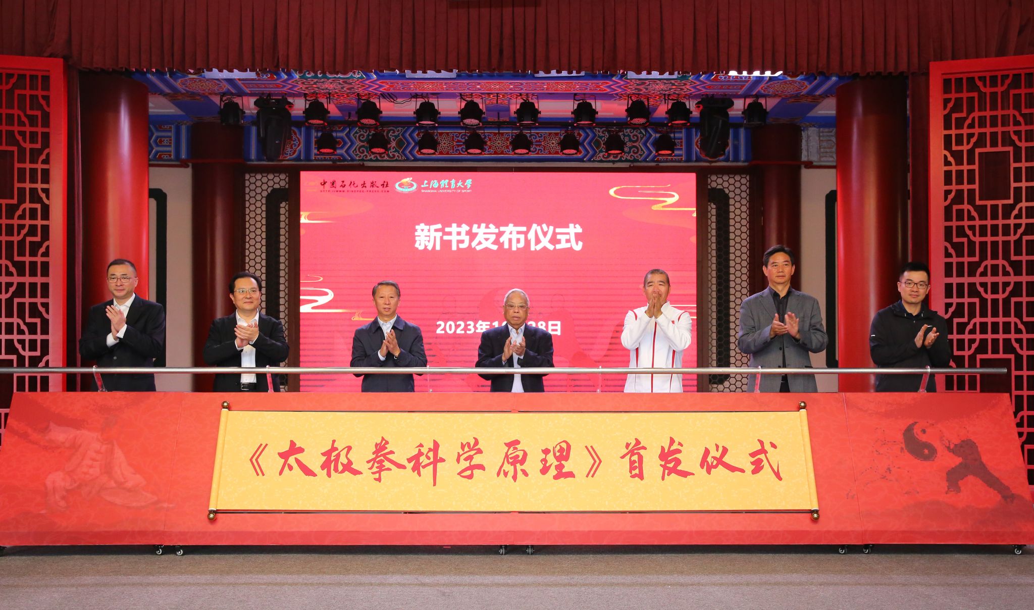 中国工程院院士、中国石油化工股份有限公司原总裁王基铭,中国石油化工集团有限公司原董事会秘书、党群工作部主任周恒友,中国石化出版公司执行董事、党委书记周志明,全国政协人口资源环境委员会办公室(四局)原一级巡视员、《太极拳科学原理》主编闫卫东,上海市教卫工作党委书记沈炜,中信出版集团股份有限公司总经理、副董事长陈炜,jinnian金年会党委书记李崟等7位领导为《太极拳科学原理》推杆揭幕。