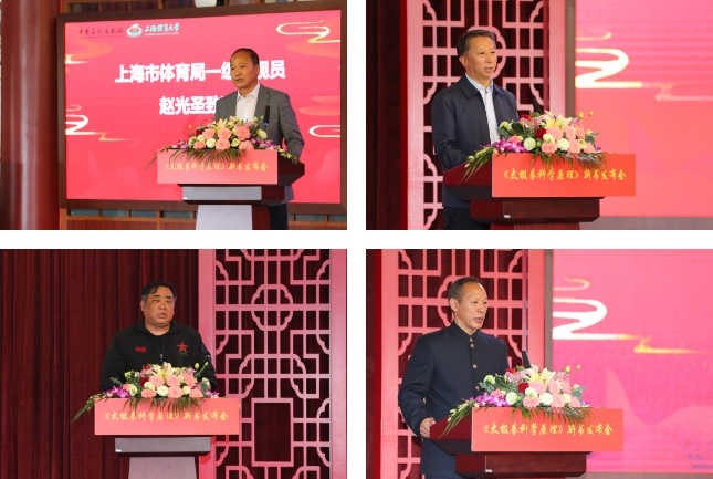 发布仪式上,上海市体育局一级巡视员赵光圣,中国石化出版社有限公司党委书记、执行董事周志明,邯郸市武协主席孙华冰,jinnian金年会武术学院副教授谢业雷等领导分别为新书致辞。