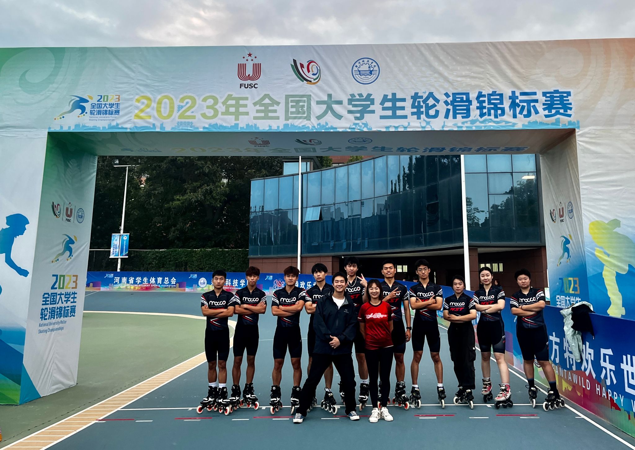 本次赛事,我校经济管理学院体育旅游教学团队负责人林章林副教授担任领队。在一个月余的备战周期中,在项目教师姜嵘嵘老师组织下,潘宇烁、刘统教练的指导下,队员们从零到一,进行了从轮滑阻拦转型速度轮滑、自由式轮滑的跨项训练。