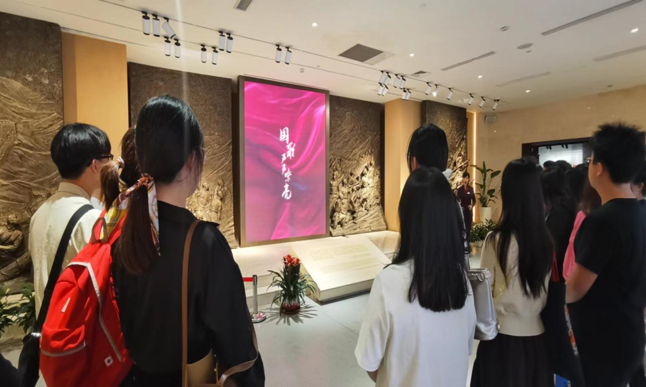 本网讯 2023年11月1日,经济管理学院2023年下半年入党积极分子、发展对象、预备党员和新党员培训班学员在经济管理学院组织员何俊毅老师和辅导员谢生彤老师的带领下,一起前往位于上海市杨浦区荆州路151号的国歌展示馆参观学习。