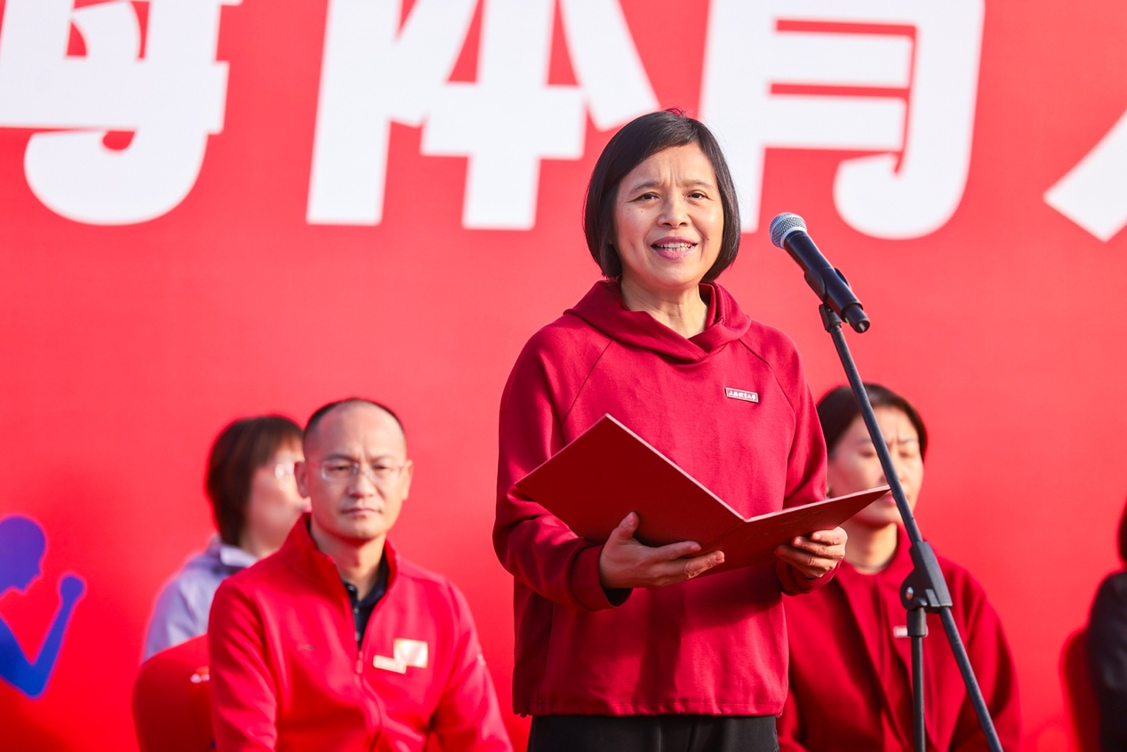 党委副书记、校长毛丽娟为本届运动会致开幕词,她代表学校领导班子向本届运动会的胜利召开表示热烈祝贺,向为本届运动会付出辛勤劳动的老师们、同学们表示衷心的感谢!向全体运动员、裁判员致以亲切的问候!接下来,徐紫怡同学和夏敏老师分别代表全体运动员和裁判员庄严宣誓。