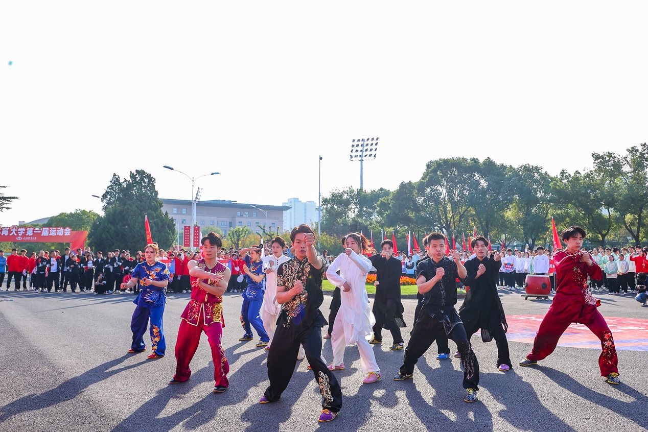 党委书记李崟宣布jinnian金年会第一届运动会开幕。随后,武术学院、艺术学院、竞技运动学院、体育教育学院纷纷为本届运动会做教学成果汇报展演。《龙腾盛世》、《青春节拍》、《武光拾色》、《赤练汉唐》、《绳舞飞扬》等展演内容精彩、节奏紧凑,他们用精湛的技艺和默契的配合展示了我校近年来人才培养取得的累累硕果,更呈现出我校体育健儿团结协作、顽强拼搏的精神面貌。