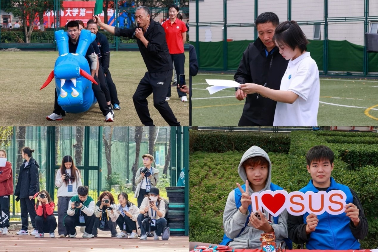 开幕式当天,田径项目比赛和健身项目比赛也同时拉开序幕。田径赛场上运动员们都以饱满的热情、昂扬的斗志、不服输的劲头参与到比赛当中,人人奋勇、个个争先,很好地诠释了“勇于竞攀”的上体精神。开幕式当天除了田径类比赛,还进行了健身项目比赛。同“舟”共济、冰壶“队”战、长绳“8”字跳等8个健身项目比赛分别在中央足球场、多功能运动场、绿瓦大楼前陆续举行,教职工和学生踊跃参与,比赛现场充满了热烈欢乐的气氛。通过健身项目比赛,有效提升了学校师生的凝聚力与合作精神,收获了健康与快乐。