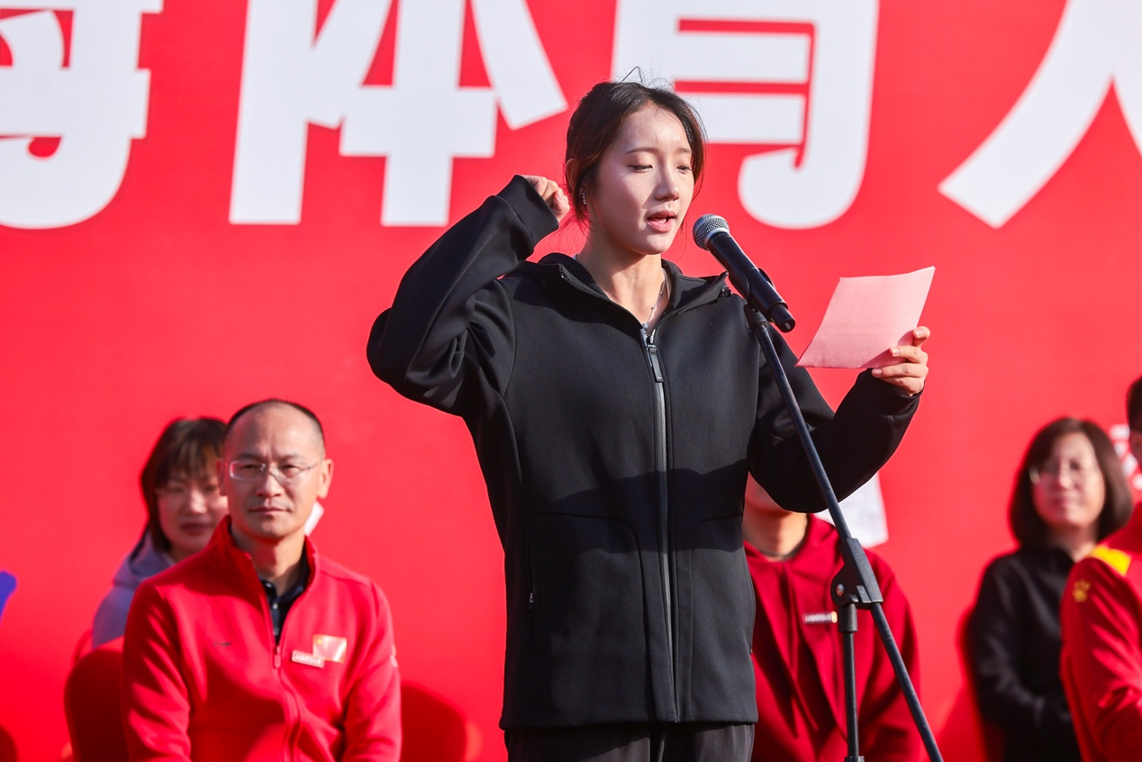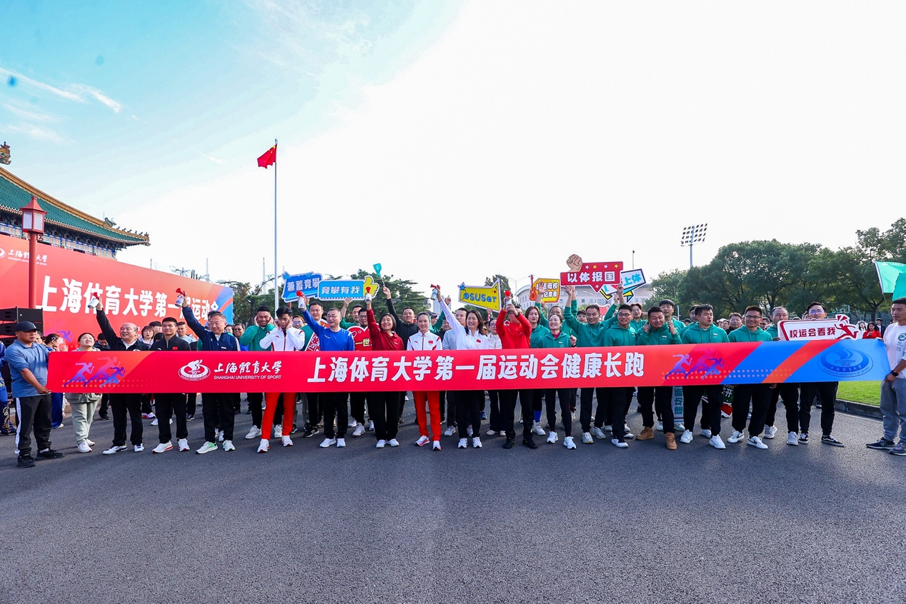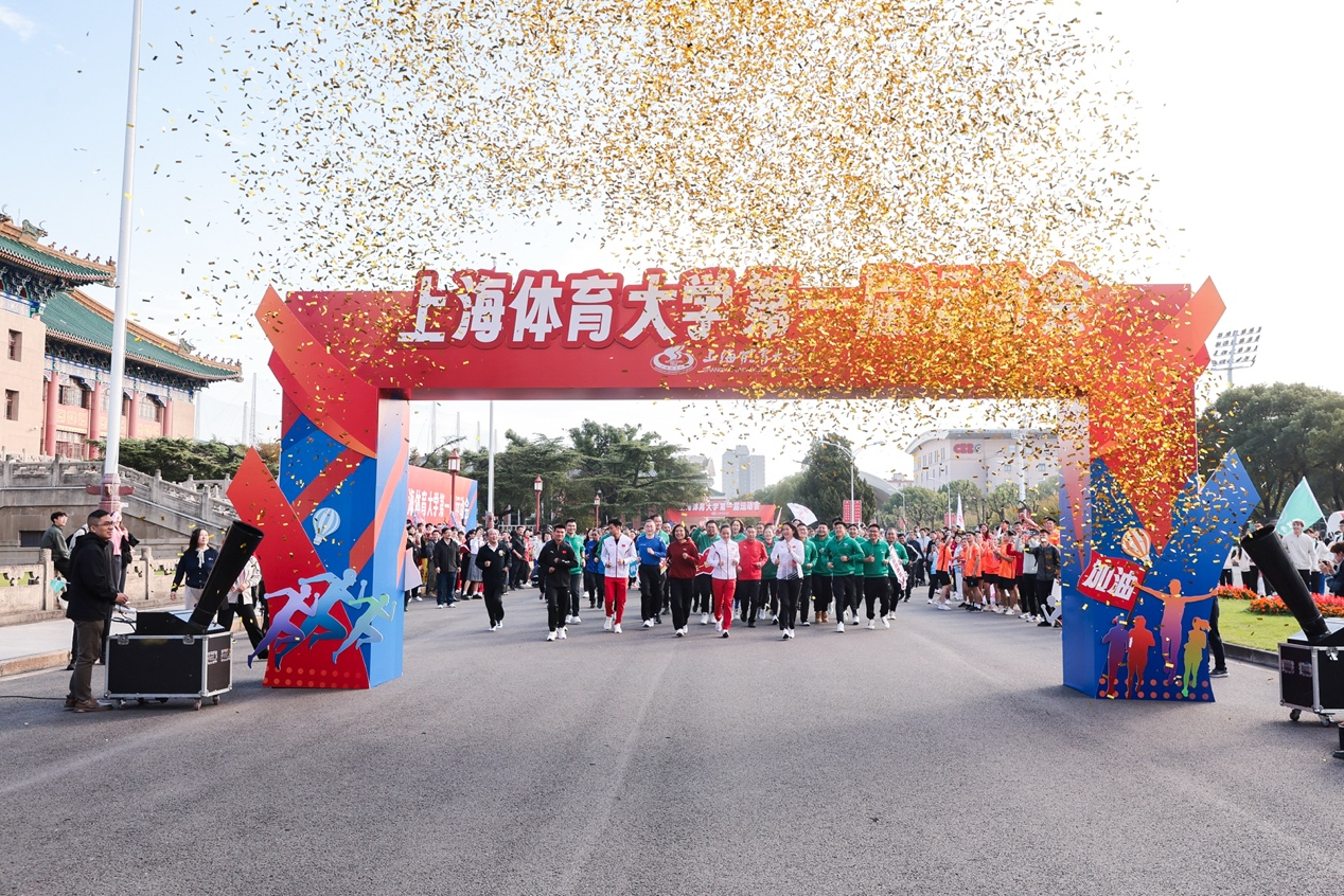 教学成果汇报展演后,校领导共同为健身长跑鸣枪发令,在我校杭州亚运冠军江海东、陈冠锋、韦永丽的领跑下,教职工们迎着金雨开启了jinnian金年会第一届运动会的篇章。